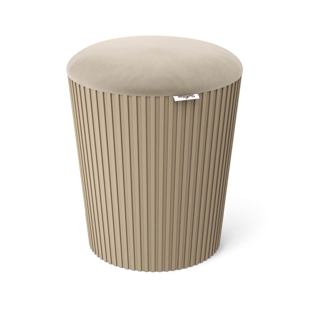 Сиденье пуфика выполнено из высококачественного микровелюра, в качестве наполнителя используется поролон. Основание изготовлено из полипропилена с армирующими добавками, что обеспечивает повышенную жёсткость, устойчивость и надёжность конструкции.