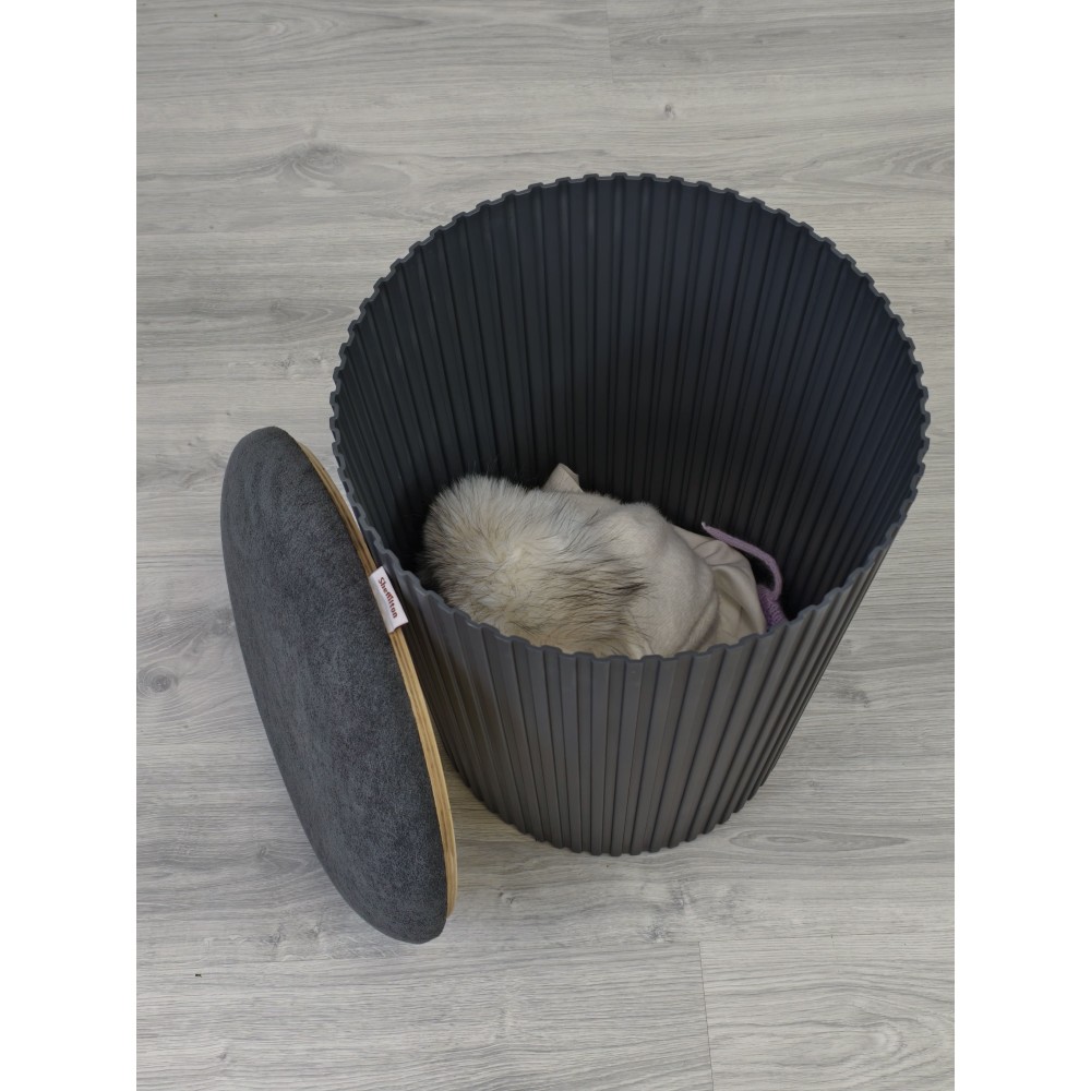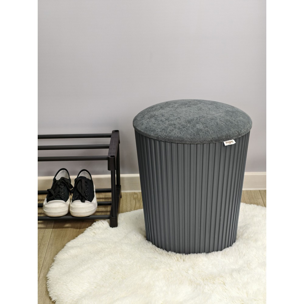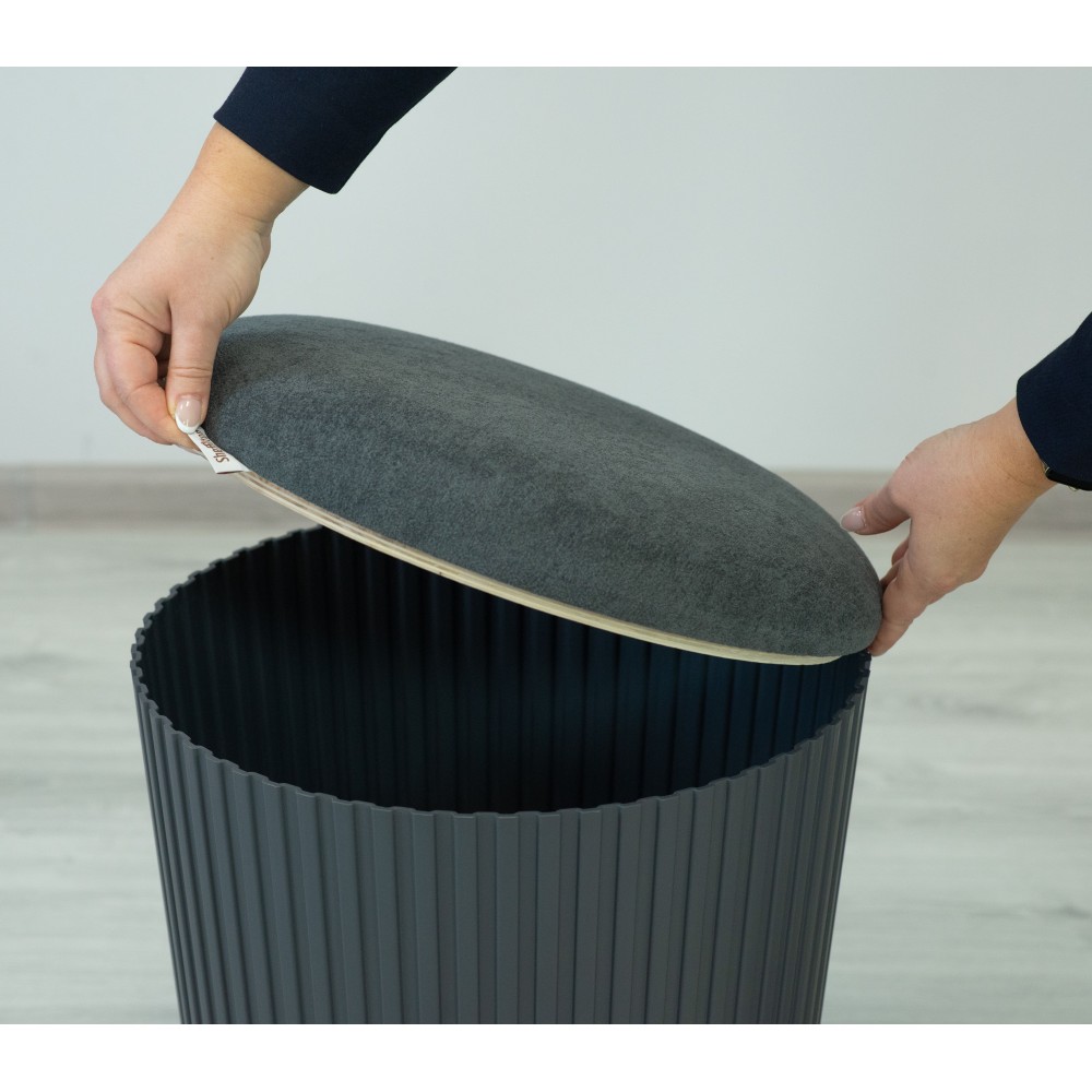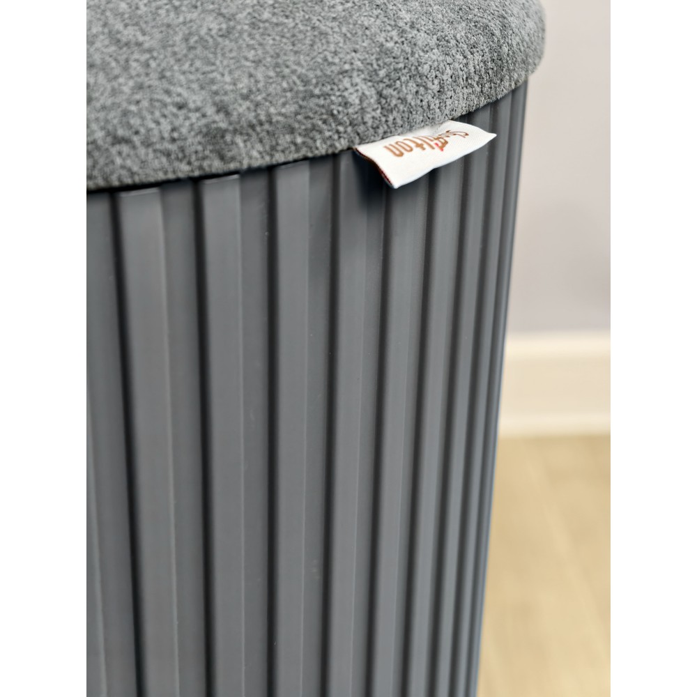 Верхняя часть пуфика открывается, образуя удобное внутреннее пространство для хранения. Внутрь можно убрать пледы, журналы, аксессуары или другие мелочи, поддерживая порядок и визуальную чистоту интерьера. Такое решение делает пуфик не только декоративным элементом, но и практичным помощником в повседневной жизни.