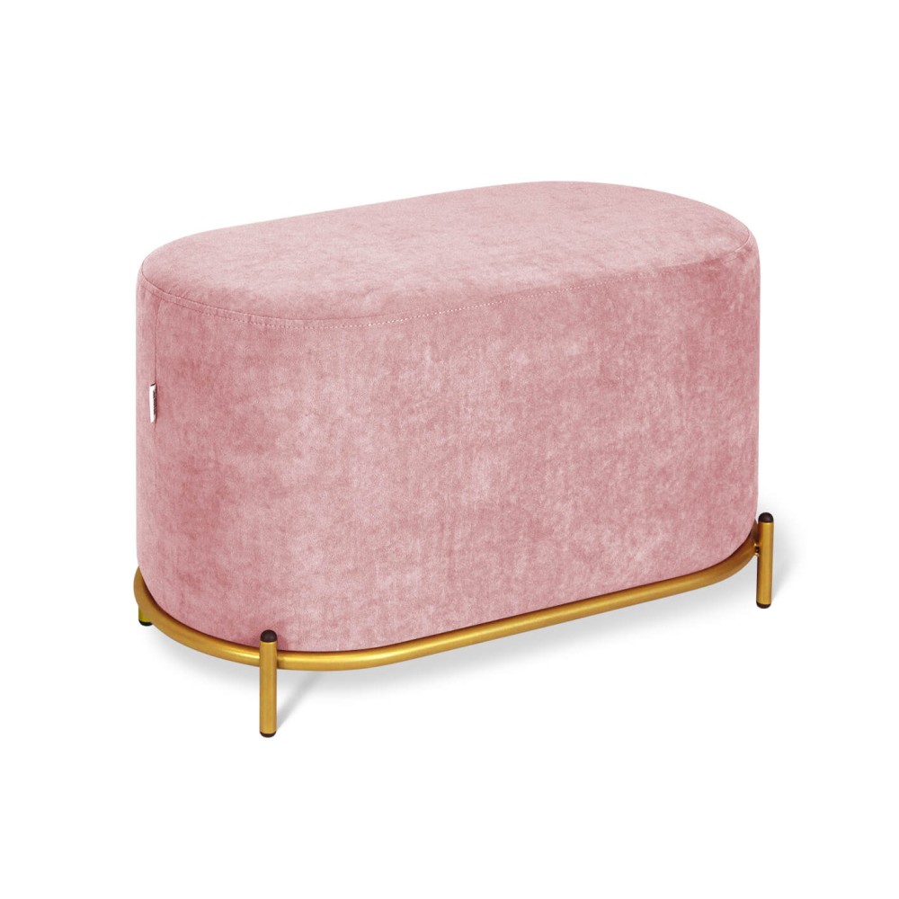 Нежный пуф овальной формы добавит уюта и разбавит Ваш интерьер. Главное украшение – тонкие ножки из металла. Надежность металла и мягкость ткани прекрасно сочетаются в готовом исполнении пуфа.