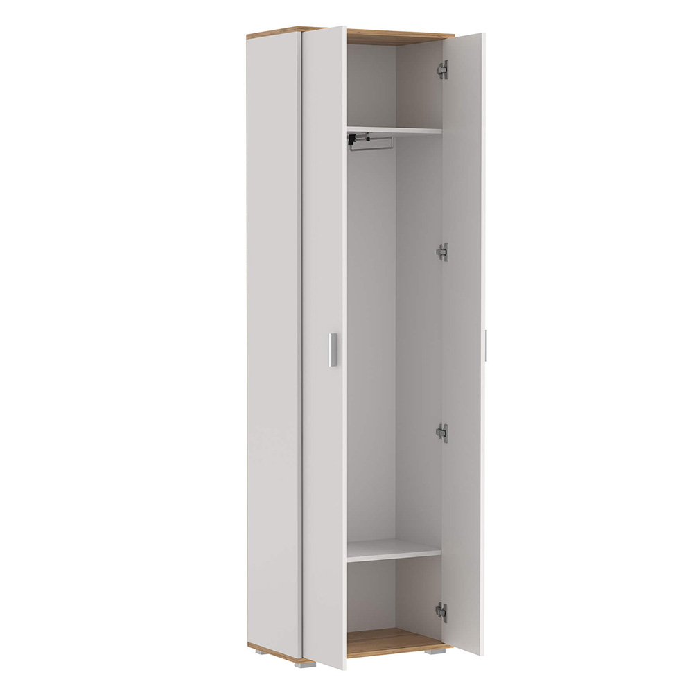 плечиках, обеспечивающая быстрый доступ и комфортное размещение вещей. Внизу шкафа предусмотрена полка, разделяющая пространство на секции для обуви или других предметов, что