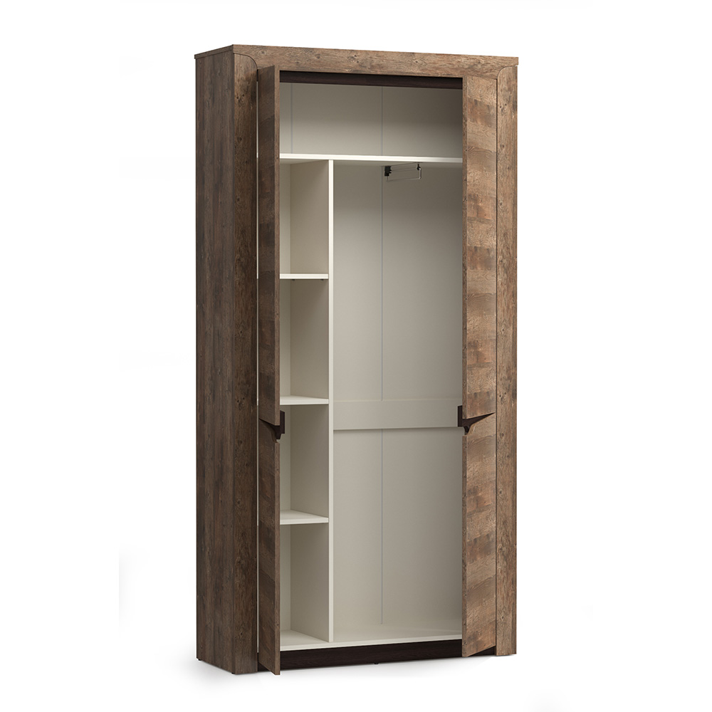 Шкаф оборудован полками и выдвижной вешалкой, что обеспечивает удобное хранение одежды, обуви и аксессуаров.
