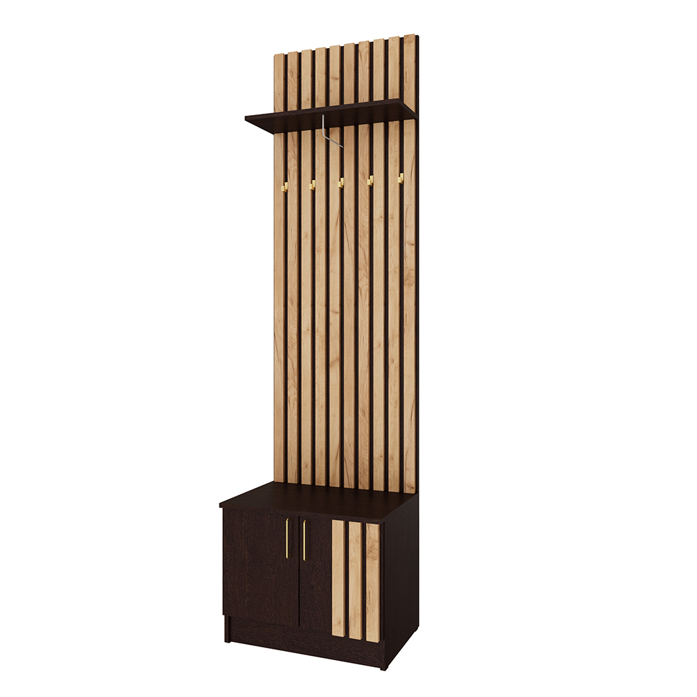 Тумба с вешалкой 600 КПТВ-1 — это стильное и функциональное решение для организации пространства в прихожей. Такая модель объединяет в себе несколько полезных элементов, позволяя максимально эффективно использовать доступное место. На крючках можно удобно разместить верхнюю одежду и аксессуары. Удобная тумба служит не только для хранения обуви, но и может быть использована для хранения сумок и других вещей.