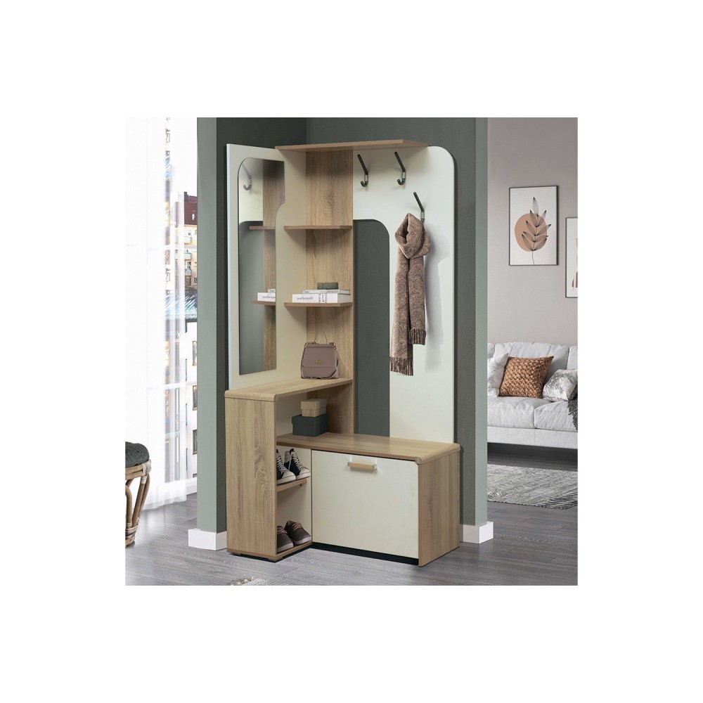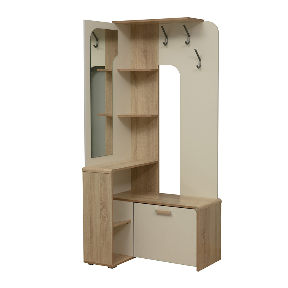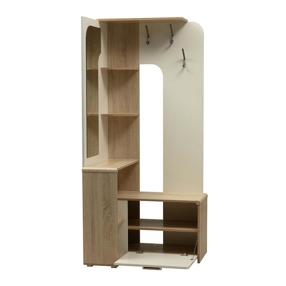 Благодаря стильному дизайну и компактным размерам вешалка Антре впишется в малогабаритную прихожую или квартиру-студию. Наличие полок, надежные крючки и ниша под обувь позволят разместить верхнюю одежду, уличную и домашнюю обувь, сезонные аксессуары и головные уборы.