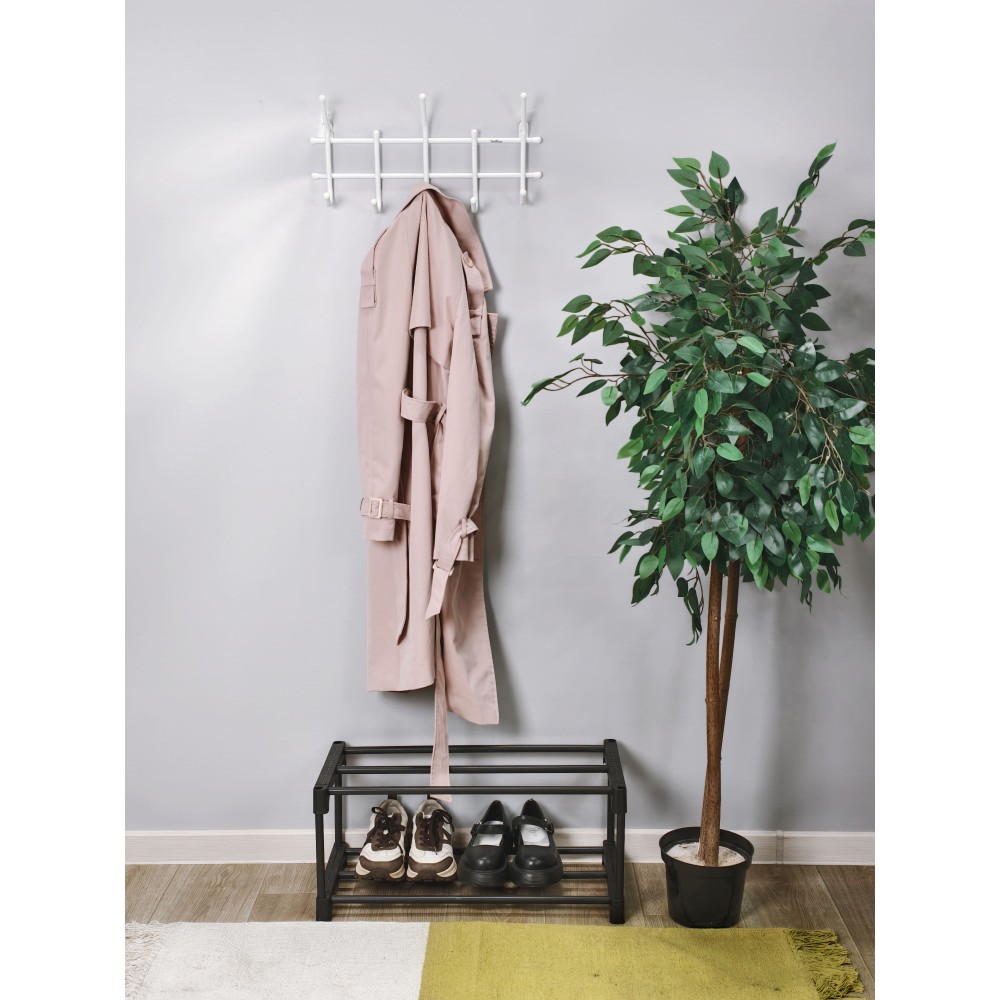 Вешалка выполнена из металлической трубы 10 мм. и пластиковой фурнитуры 12 мм.