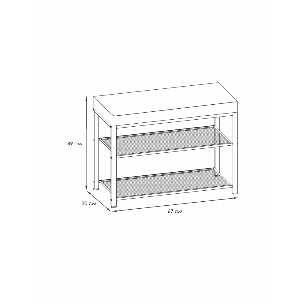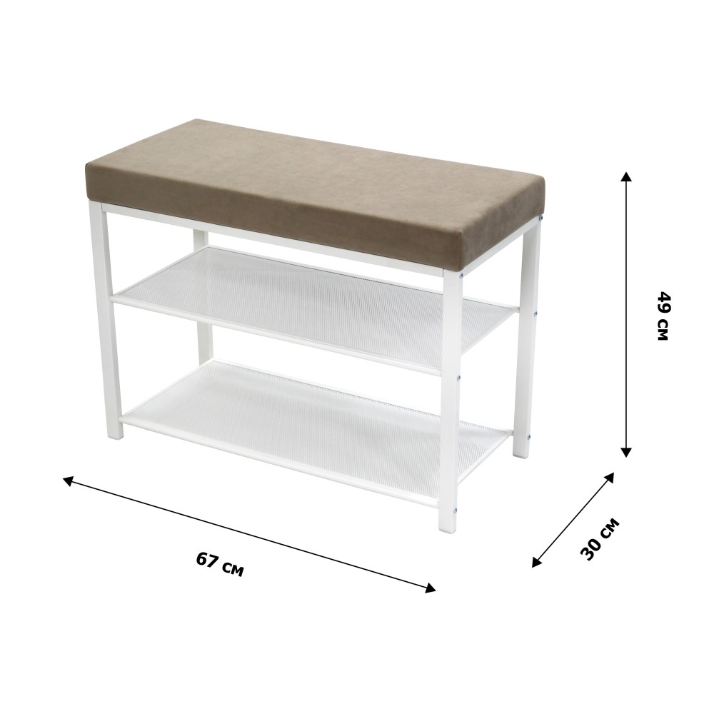 Дополнительно : Две полки вместят до 6 пар обуви. Каждая полка выдерживает нагрузку до 8 кг. Максимальная нагрузка на сиденье составляет до 120 кг. Температура применения от 0 °C до +30 °C.