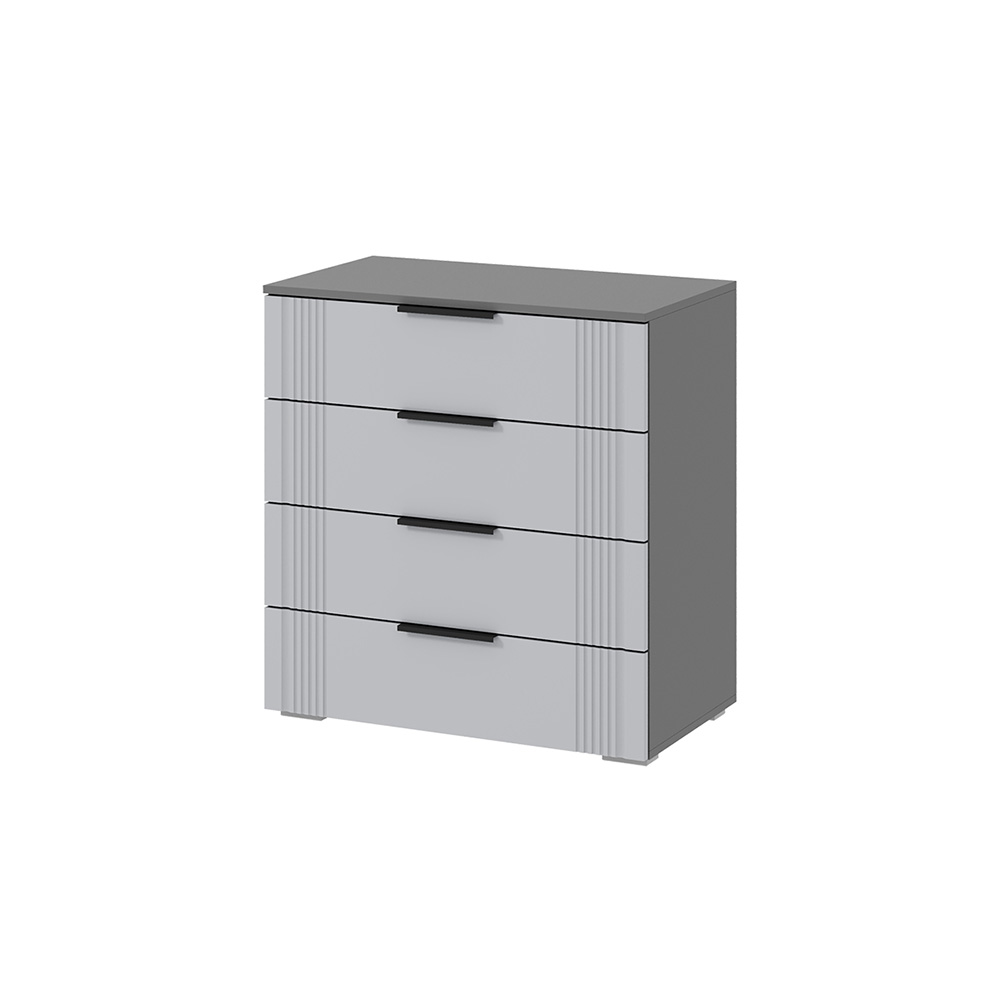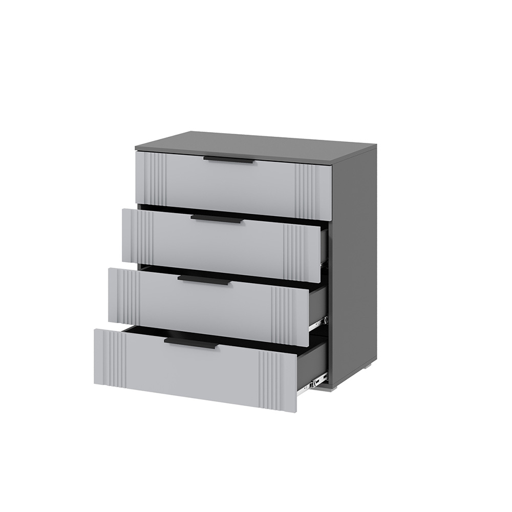 Комод из модульной серии Альмерия дополнит современный интерьер комнаты. Вместительные ящики позволят организовать место хранения белья и одежды, аксессуаров и других нужных предметов.