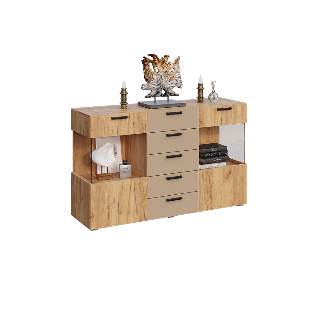 Комод с ящиками из модульной серии Алтея дополнит современный интерьер комнаты. Вместительные ящики и полки позволят организовать место хранения белья и одежды, аксессуаров и других нужных предметов.