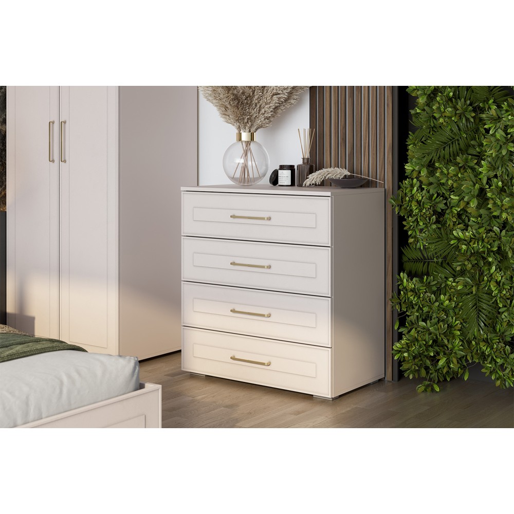 Комод с ящиками из модульной серии Антеро дополнит современный интерьер комнаты. Вместительные ящики позволят организовать место хранения белья и одежды, аксессуаров и других нужных предметов.