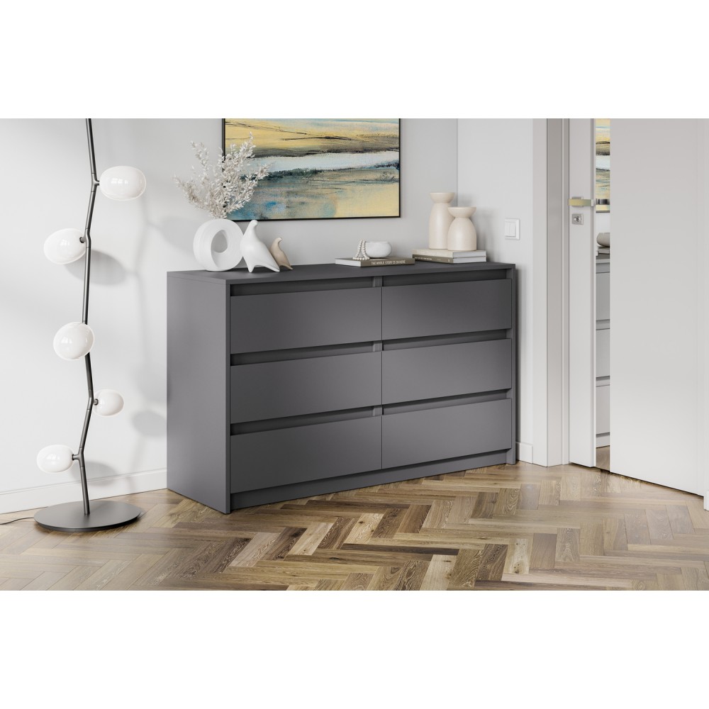 Комод из модульной серии Айден дополнит современный интерьер комнаты. Вместительные ящики позволят организовать место хранения белья и одежды, аксессуаров и других нужных предметов.