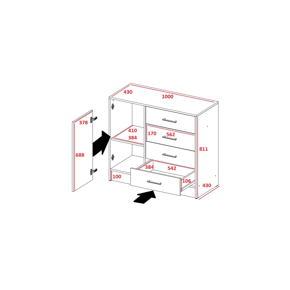 — Комод с двумя секциями: отделение с распашным фасадом и выдвижные ящики
