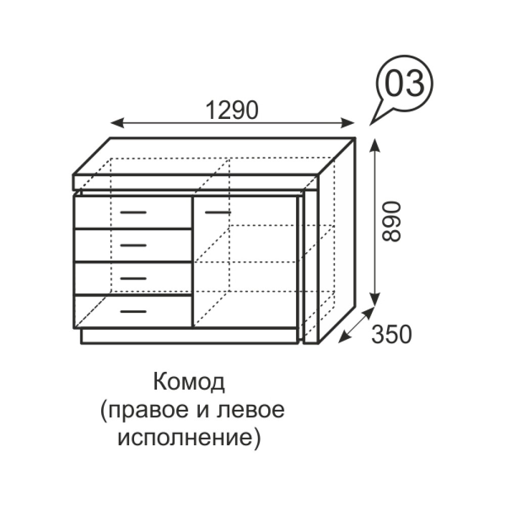 Люмен (03) Комод (Дуб Сакраменто/Белый снег)