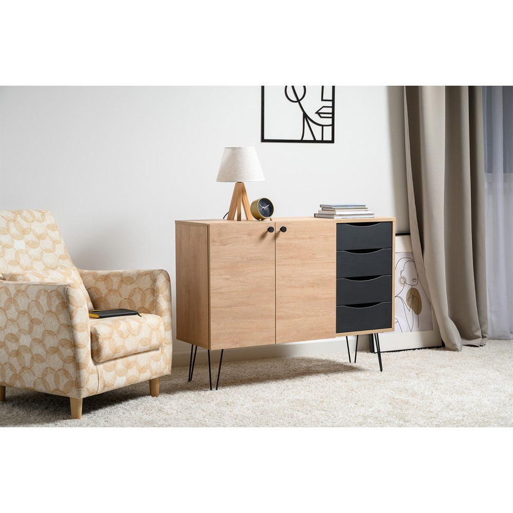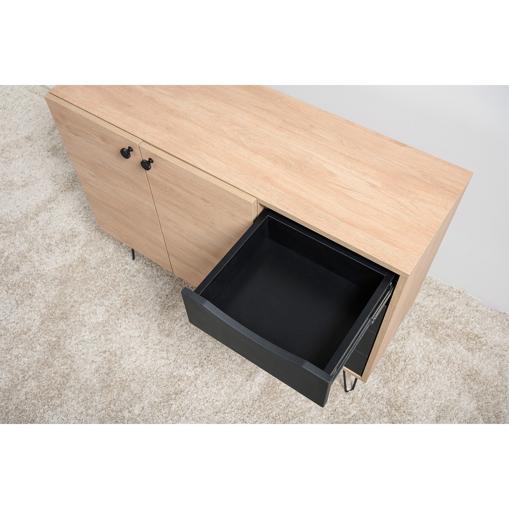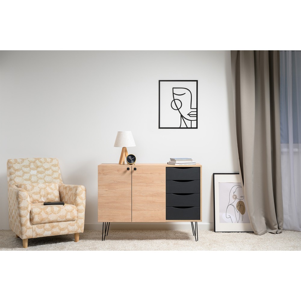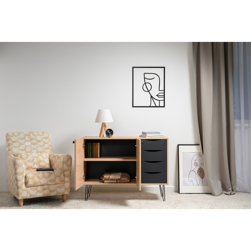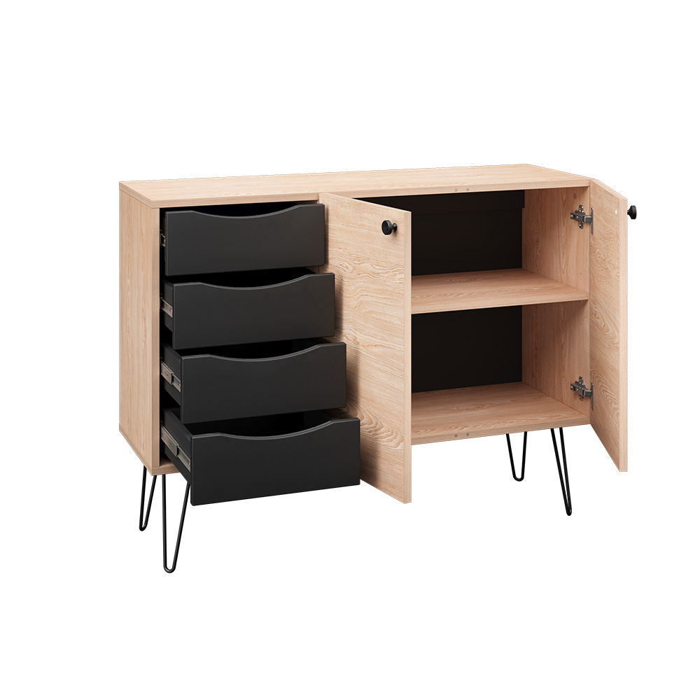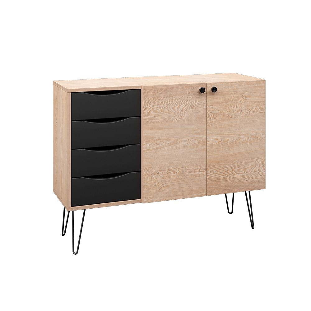 Лаконичный и стильный комод Брюс на высоких металлических опорах будет уместен в интерьере современной гостиной, спальни, прихожей.