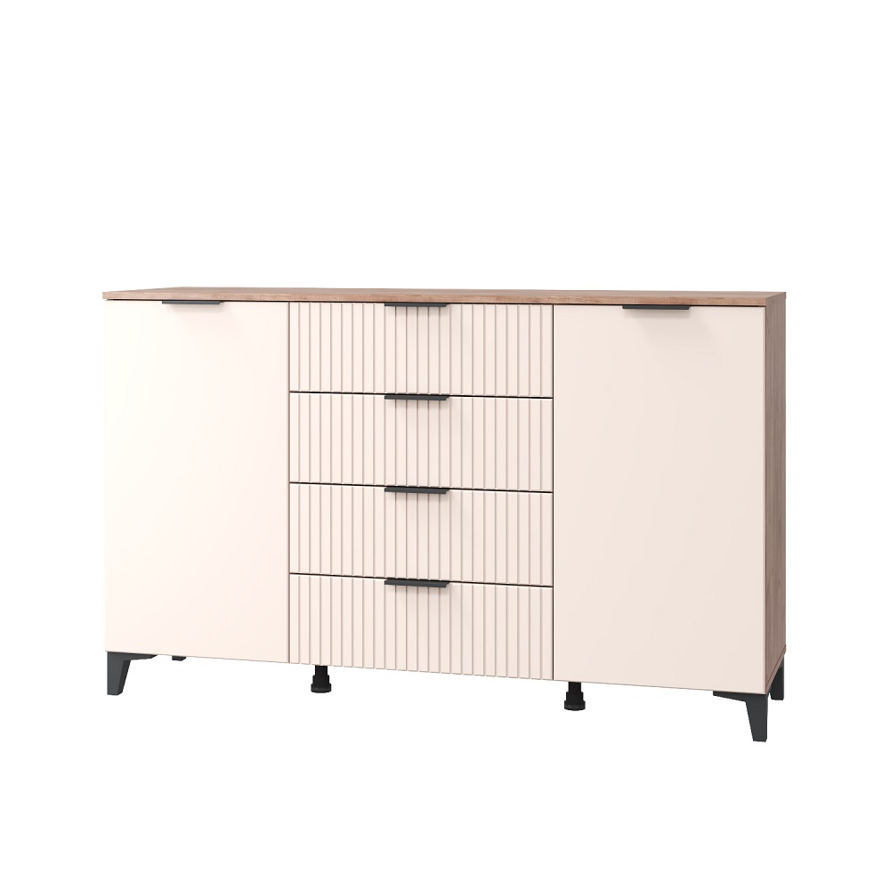 Тоскана Комод с 2 дверками и 4 ящиками Дуб Табачный, Бисквит