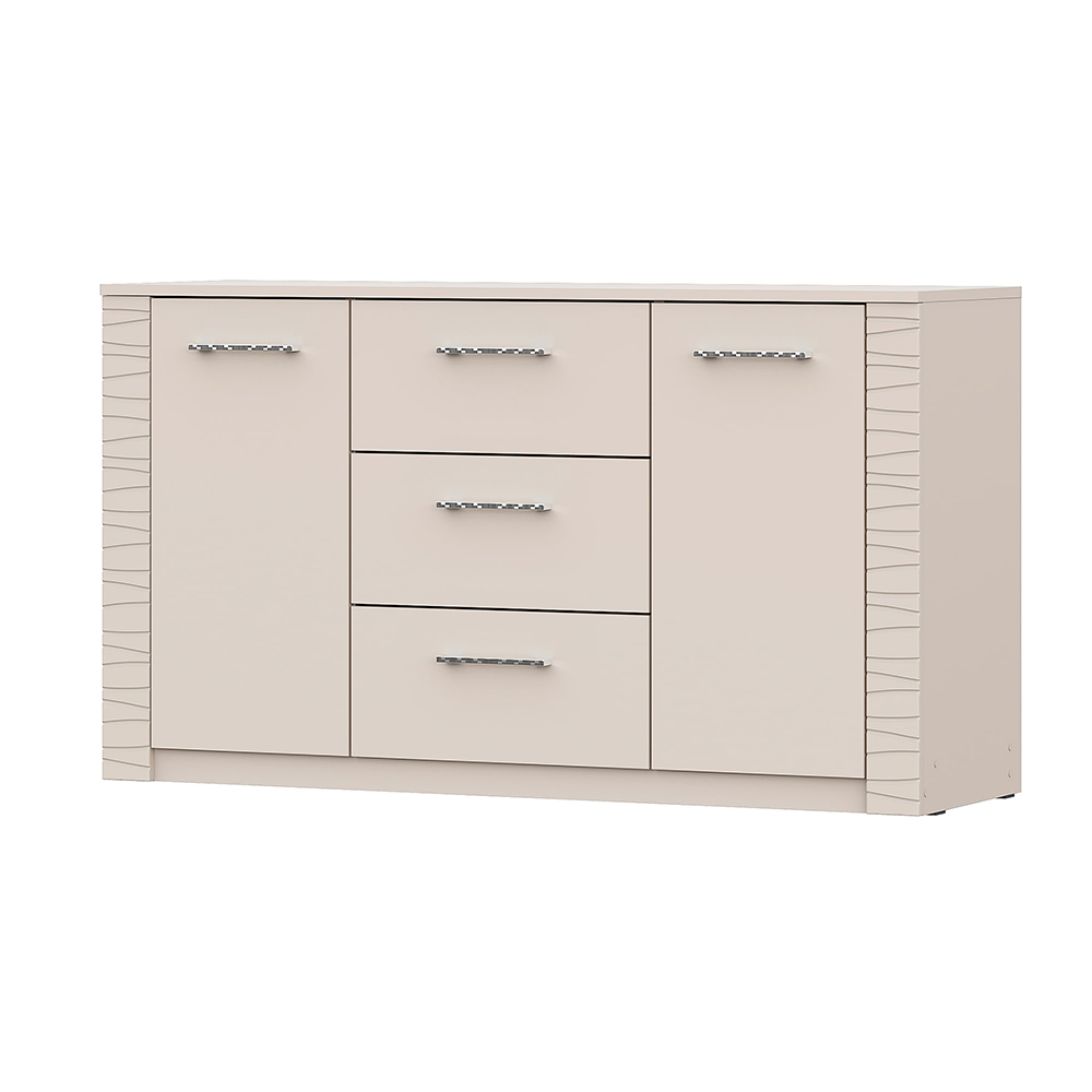Комод двухстворчатый Калипсо - это универсальный предмет мебели, который идеально подойдет для организации пространства в любом доме. Этот комод выполнен из качественных материалов, что обеспечивает его долговечность и устойчивость к повреждениям. Три выдвижных ящика предоставляют удобное и практичное решение для хранения различных предметов: от предметов гардероба до мелких вещей и аксессуаров. Ящики легко открываются и закрываются, благодаря надежным роликовым направляющим.