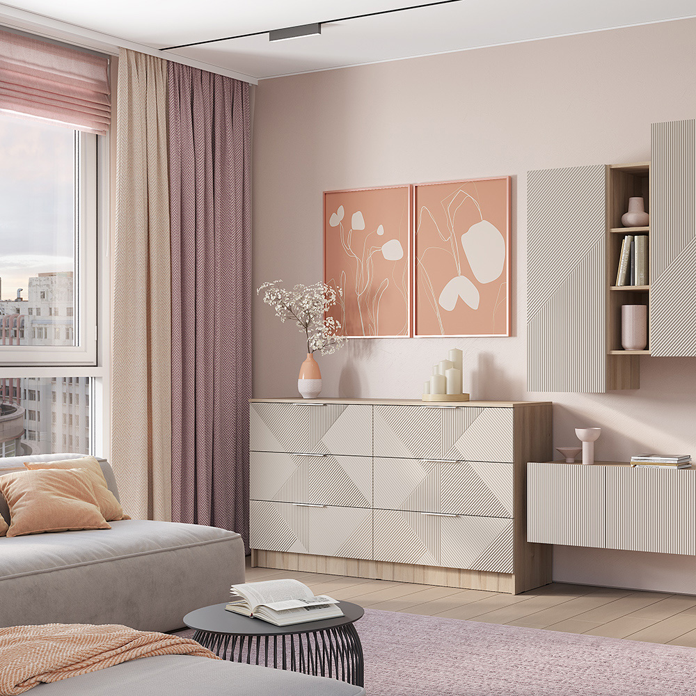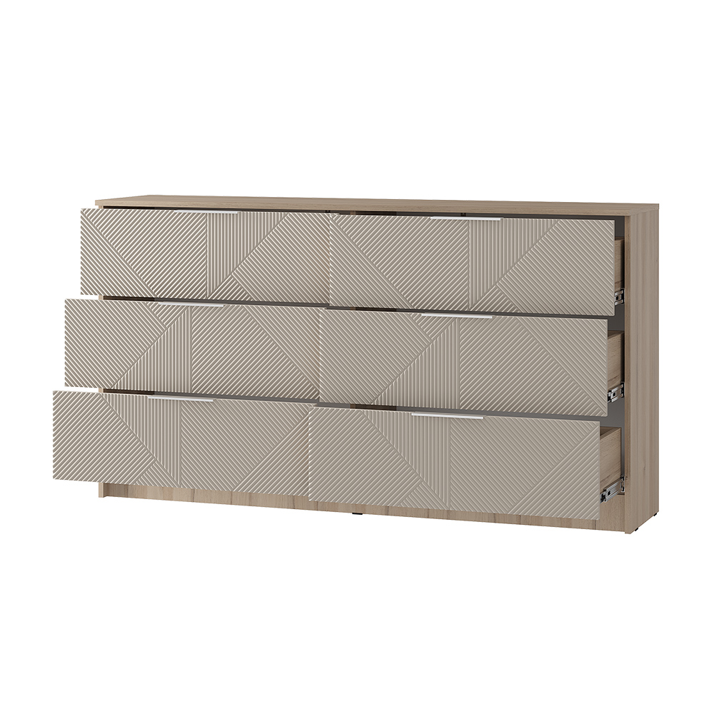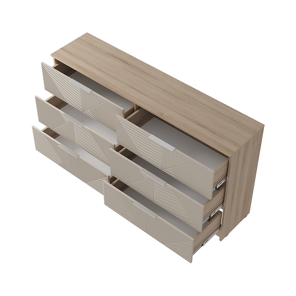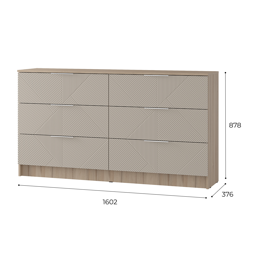 Вместительный и функциональный комод Эмилия прекрасно подойдет для хранения одежды, постельного белья и различных аксессуаров. Он имеет шесть выдвижных ящиков, что позволяет удобно организовать хранение вещей.