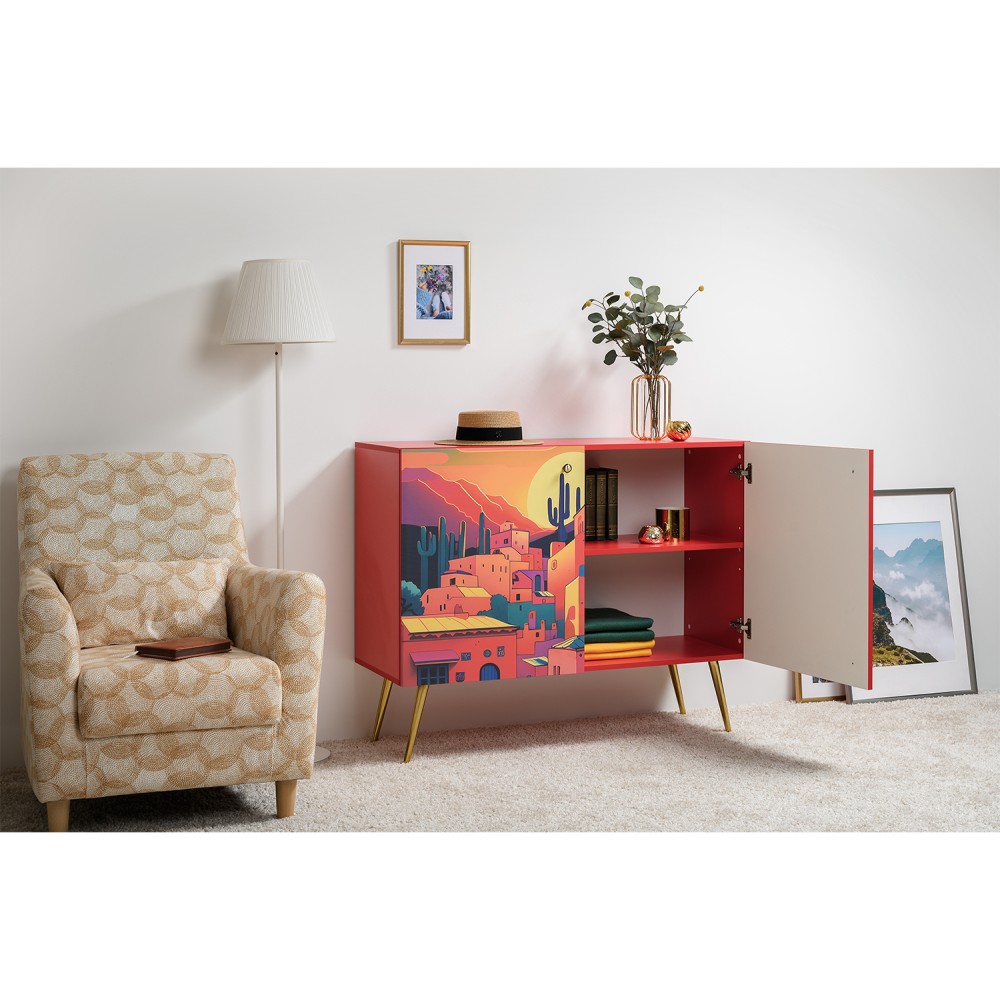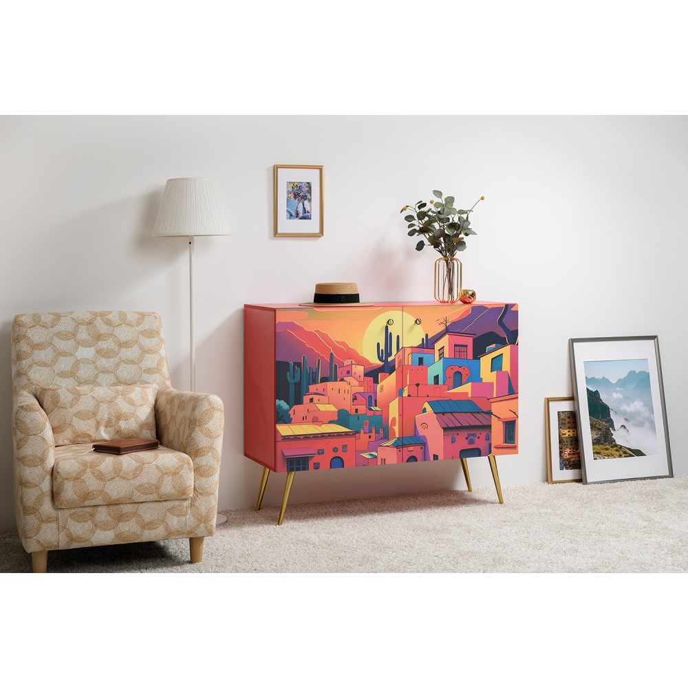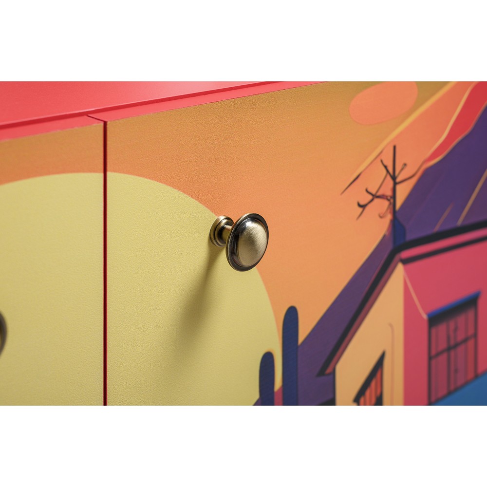 Комод Кармин с необычным, красочным дизайном станет ярким акцентом в любом интерьере. Его фасады украшены уникальными узорами и яркими цветами, которые привлекают внимание и создают атмосферу уюта.