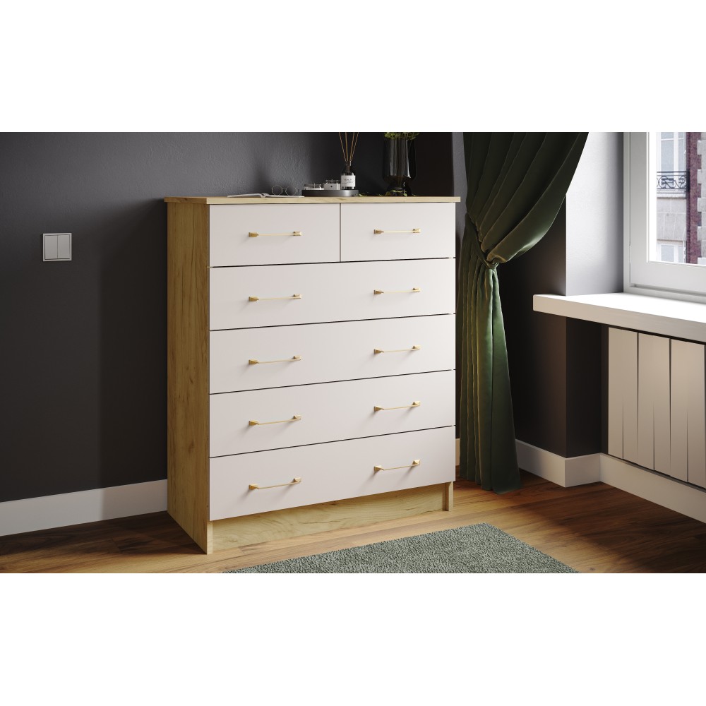 Комод из модульной серии Катрин-5 дополнит современный интерьер комнаты. Вместительные ящики позволят организовать место хранения белья и одежды, аксессуаров и других нужных предметов.