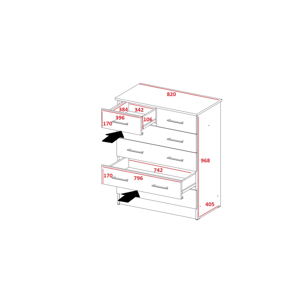 — Максимальная нагрузка на ящики (нижние): 8-10 кг