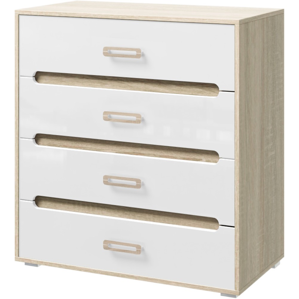 Комод из модульной серии Ким дополнит современный интерьер комнаты. Вместительные ящики позволят организовать место хранения белья и одежды, аксессуаров и других нужных предметов.