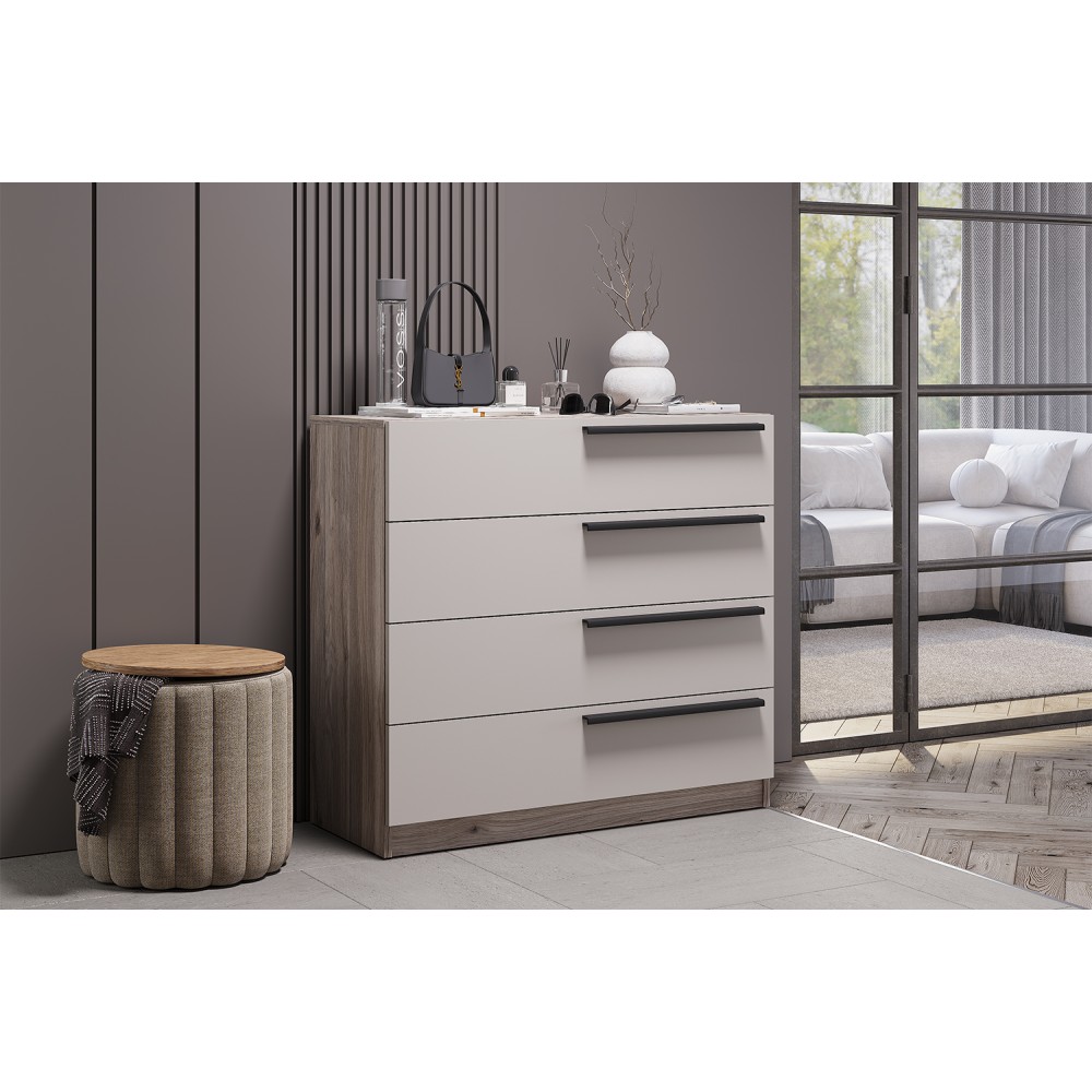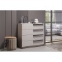 Комод состоит из 4 выдвижных ящиков на шариковых направляющих, которые позволят удобно хранить одежду, белье и прочие аксессуары.