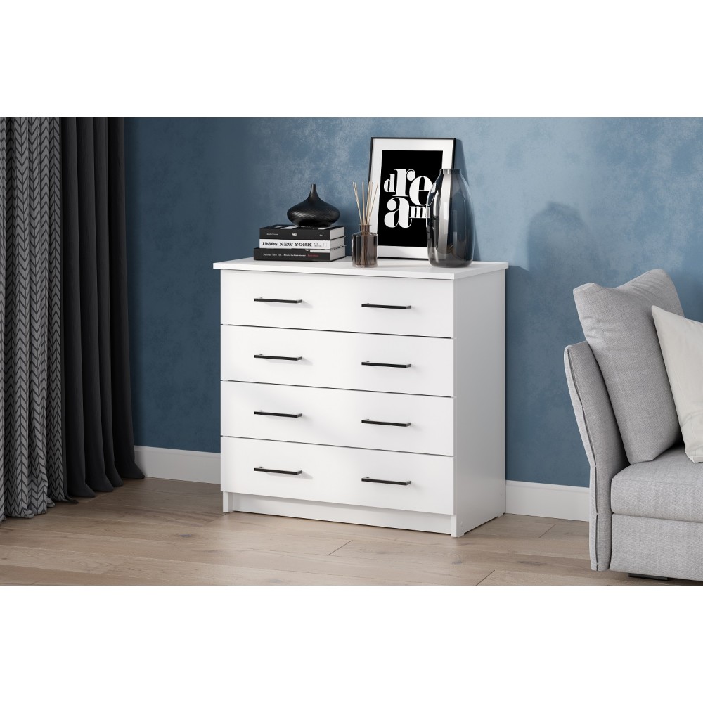 Комод «КМ 11» — это стильный и функциональный предмет мебели, который станет отличным дополнением вашего интерьера. Он выполнен в современном стиле и имеет белый цвет с текстурным покрытием, что придаёт ему изысканность и элегантность.