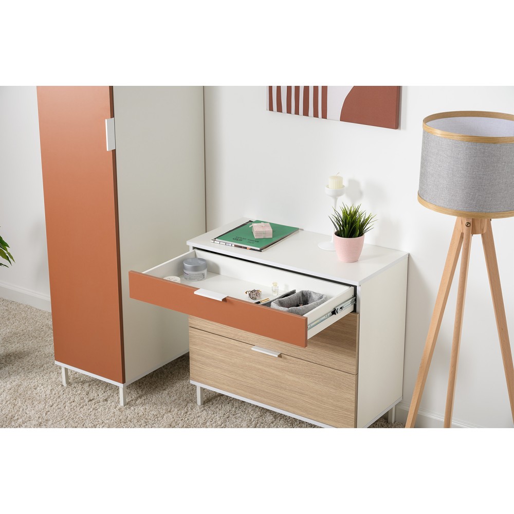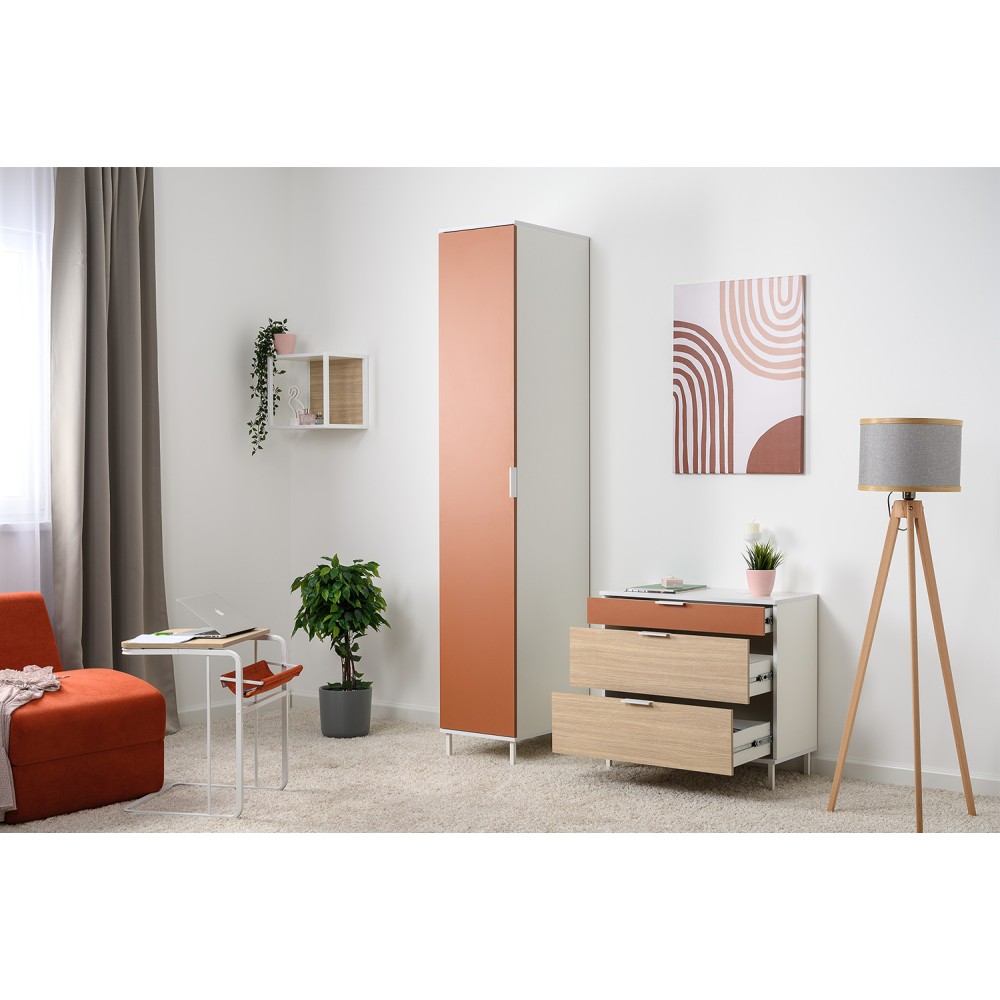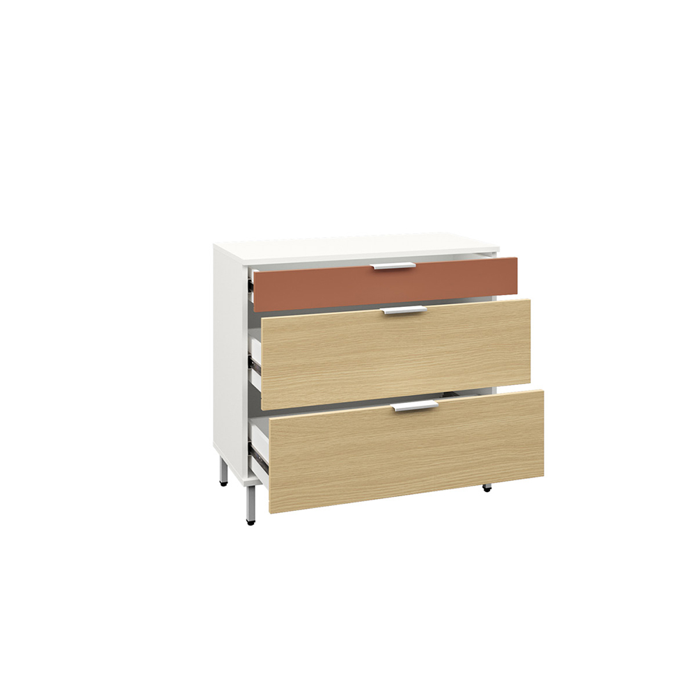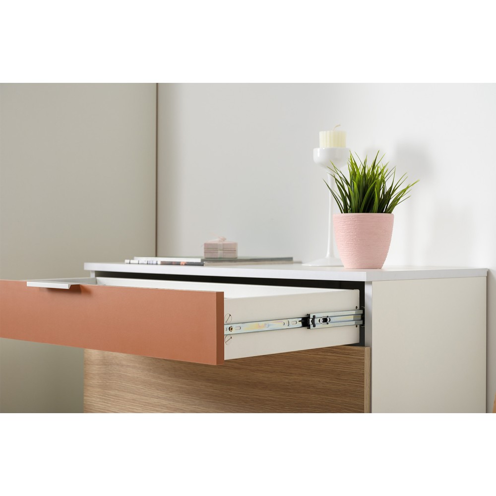 Каждый ящик оснащен надежными шариковыми направляющими, обеспечивающими плавное и бесшумное открытие и закрытие. Просторные ящики позволяют удобно хранить одежду, белье или другие предметы, поддерживая порядок в доме.