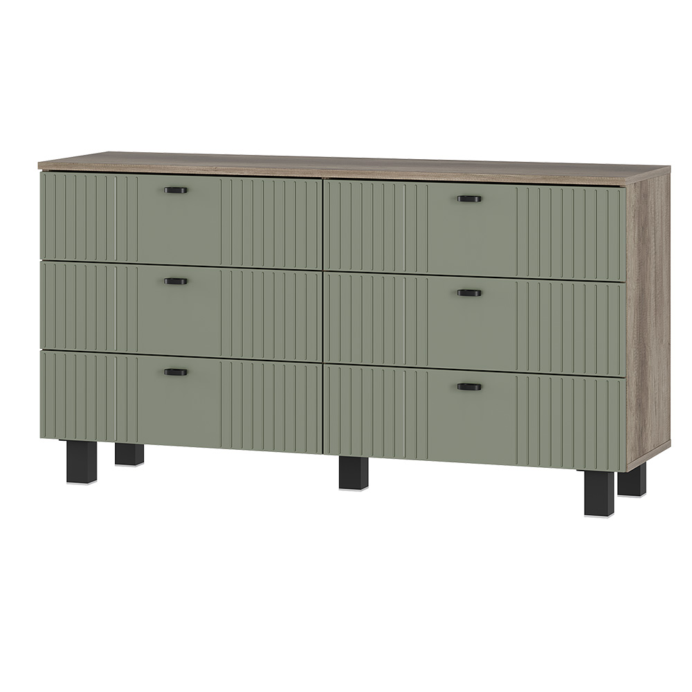 Комод «Олива» КМ-04— это элегантный и функциональный элемент для любого интерьера. Фрезеровка на фасадах создает интересные текстурные контрасты и визуальные акценты. Кроме того, этот элемент декора также помогает скрыть мелкие загрязнения, что упрощает уход за мебелью. Металлически накладные ручки на ящиках обеспечивают удобство в использовании.