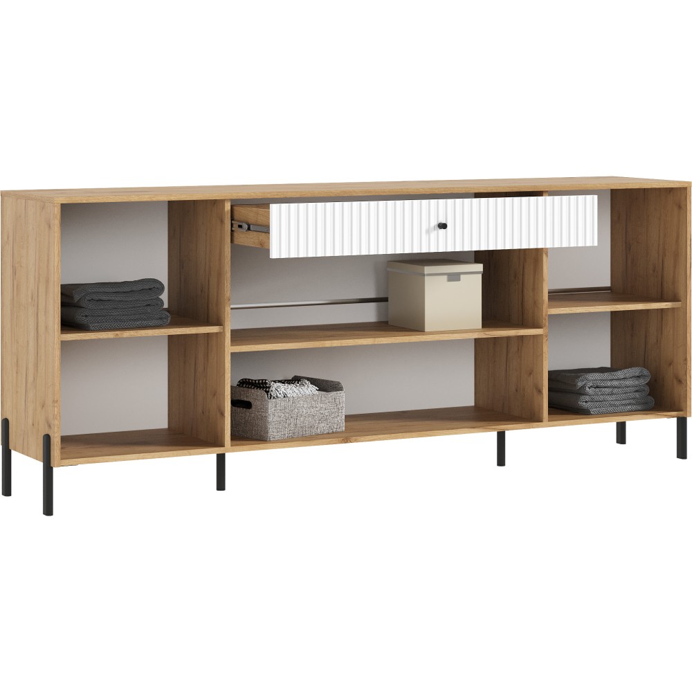 Комод из модульной серии Оливия дополнит современный интерьер комнаты. Вместительные ящики позволят организовать место хранения белья и одежды, аксессуаров и других нужных предметов.