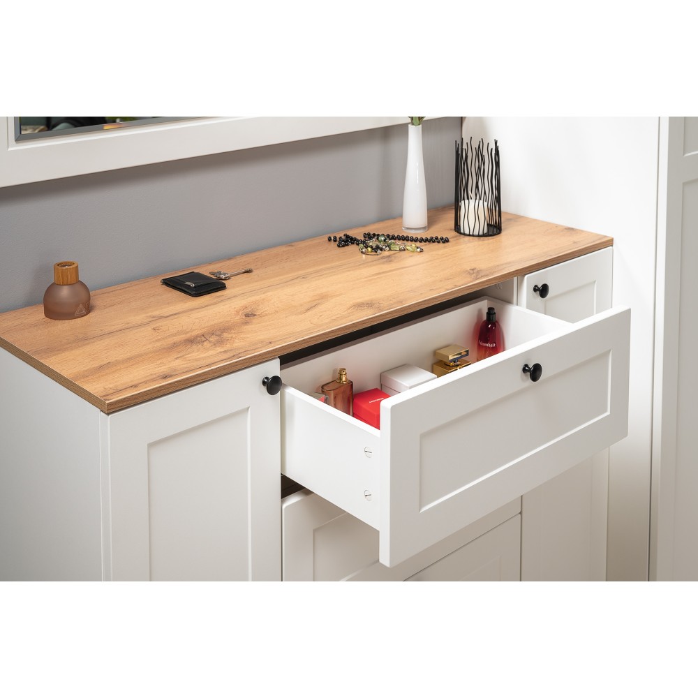 Комод Остин изготовлен из высококачественных материалов: МДФ для фасадов и ЛДСП для корпуса.
