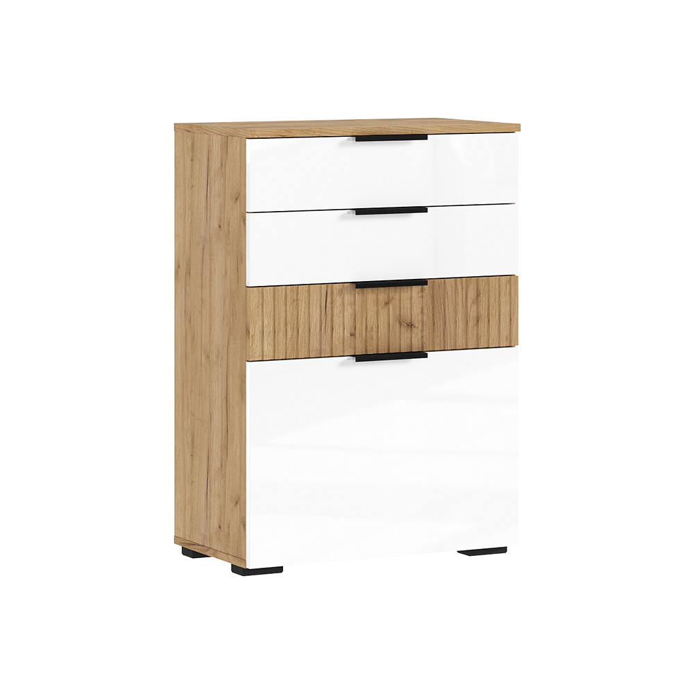 Комод с ящиками из модульной серии Роджина дополнит современный интерьер комнаты. Вместительные ящики позволят организовать место хранения белья и одежды, аксессуаров и других нужных предметов.