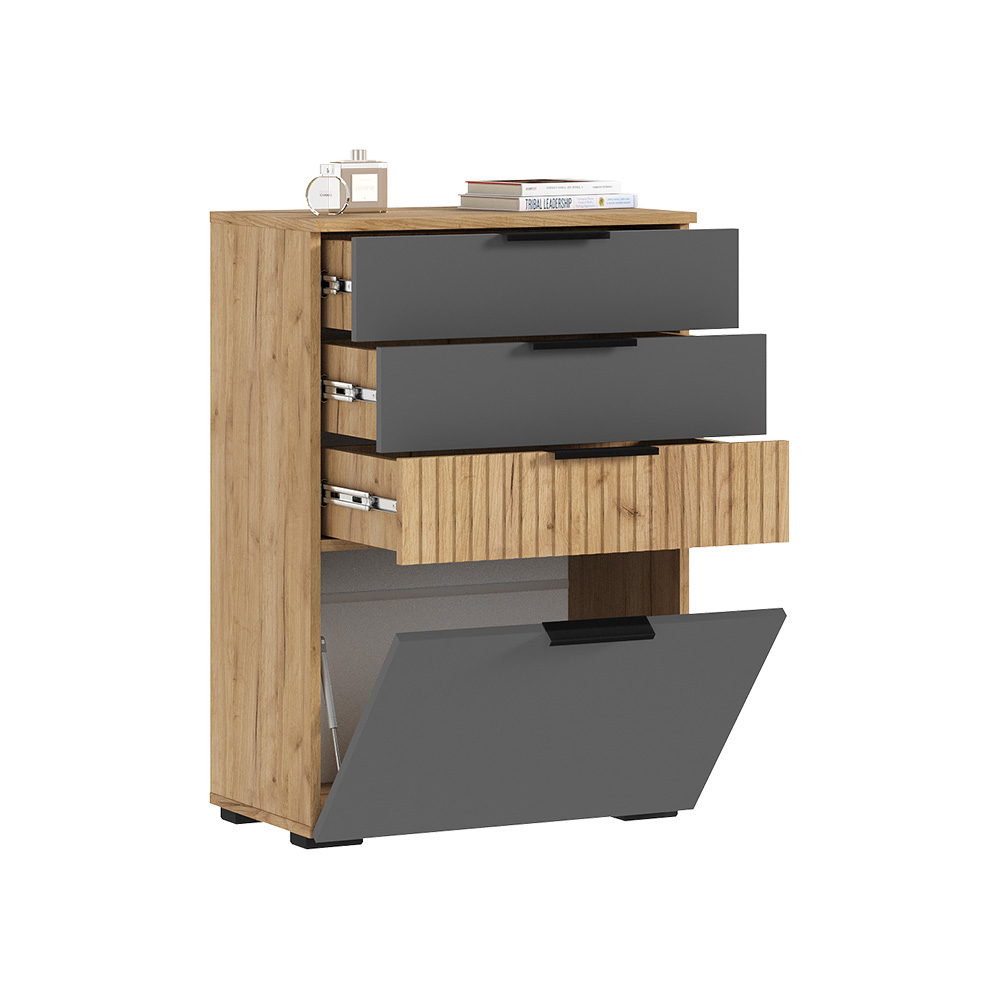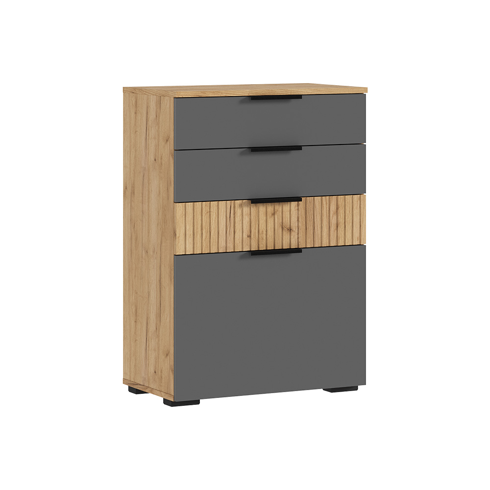 Комод с ящиками из модульной серии Роджина дополнит современный интерьер комнаты. Вместительные ящики позволят организовать место хранения белья и одежды, аксессуаров и других нужных предметов.