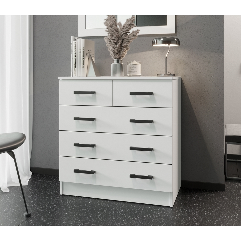 Комод К800-3/2 Белый гладкий исполнен в трендовом цвете и прекрасно дополнит классический и сканди интерьер комнаты. Три вместительных ящика позволят организовать место хранения для белья и одежды, а два небольших вместят нужные мелочи и аксессуары.