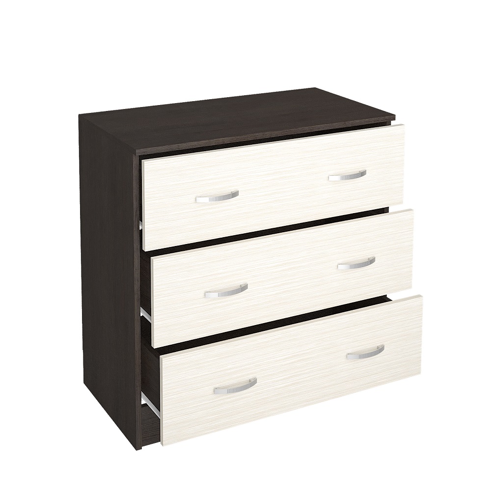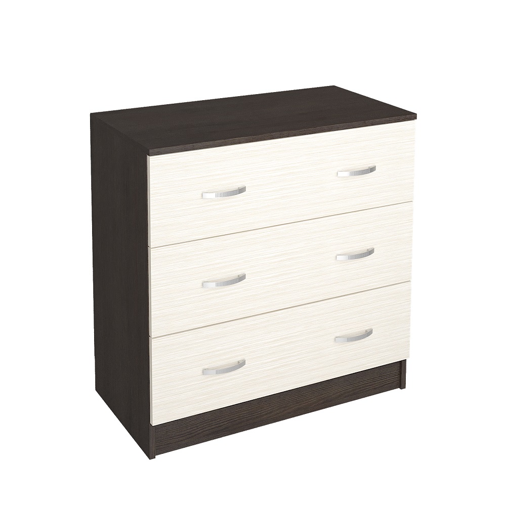 Комод Ронда подойдет даже для небольшой спальни, при этом три объемных ящика вместят белье и другие предметы гардероба. Ручки пластиковые, ящики оснащены роликовыми направляющими.
