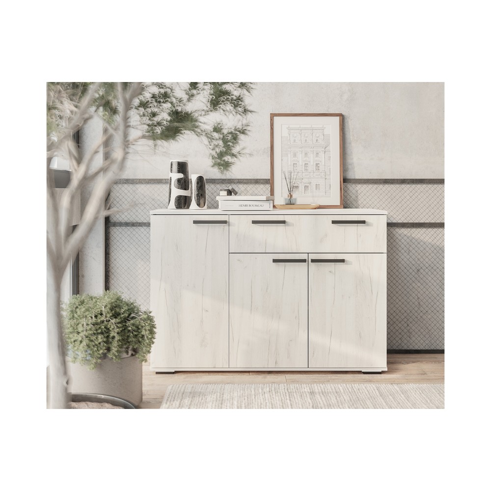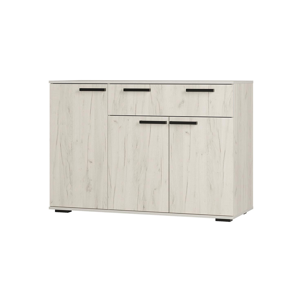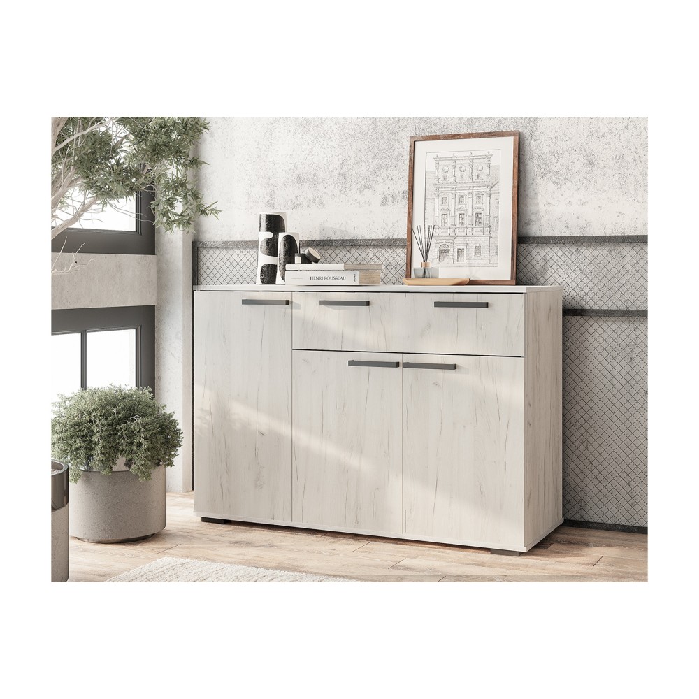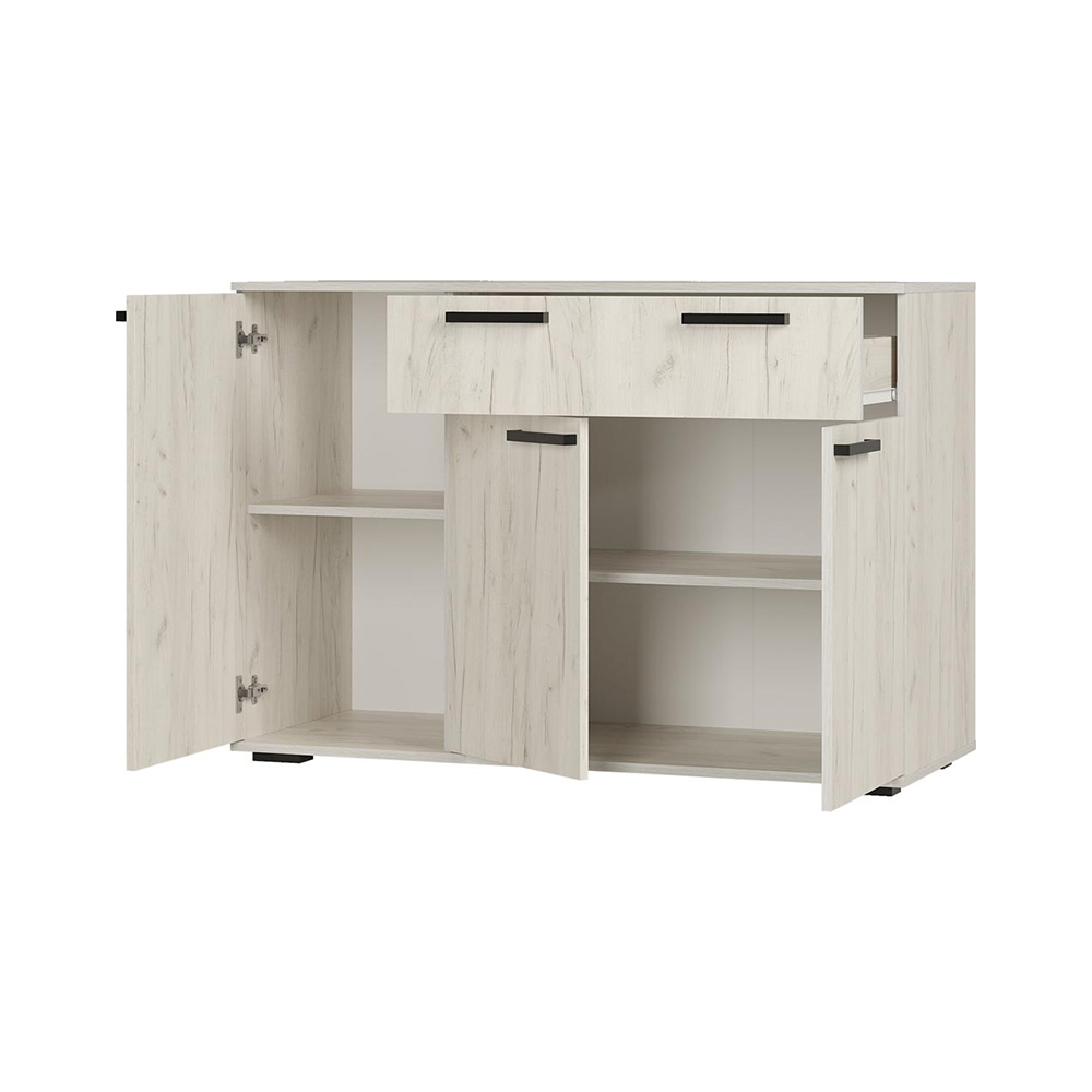 Комод с ящиками из модульной серии Стандарт №4 дополнит современный интерьер комнаты. Вместительные ящики и полки за распашными дверьми позволят организовать место хранения белья и одежды, аксессуаров и других нужных предметов.