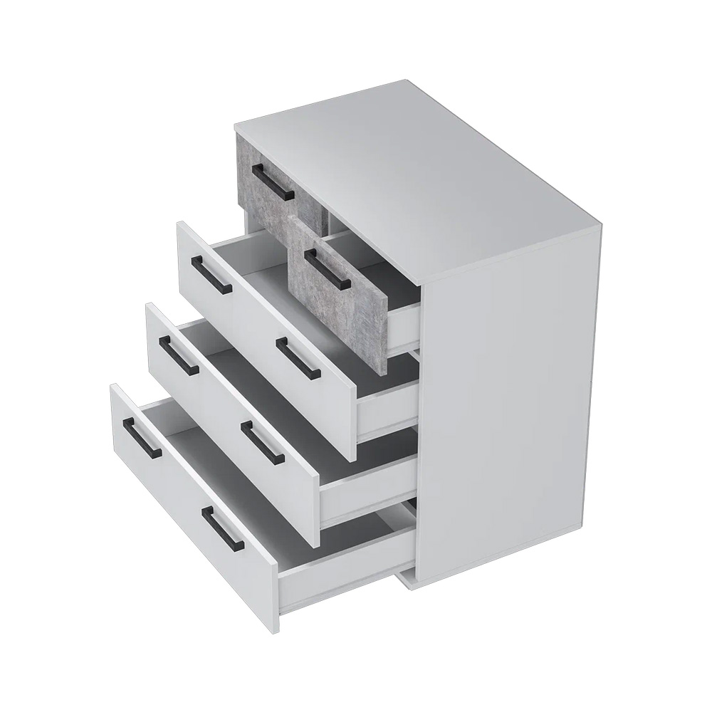 Комод «Стандарт-5 NEW» - классическая модель, которая подойдет для гостиной, спальни или домашнего офиса. Простая прямоугольная форма комода позволит грамотно зонировать пространство. На полках и в просторных выдвижных ящиках удобно хранить как постельное бельё, небольшие предметы одежды и документы. Верхняя зона идеально подойдет для лампы, фотографий, комнатных растений. Новый современный декор в оттенке «дуб крафт белый» дополнит любой интерьер.