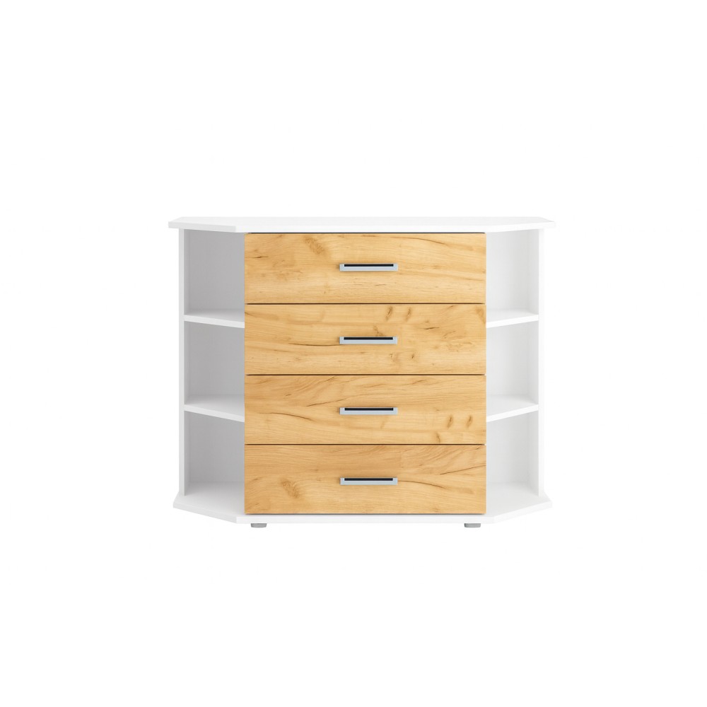 — Угловой комод с открытыми полками и выдвижными ящиками