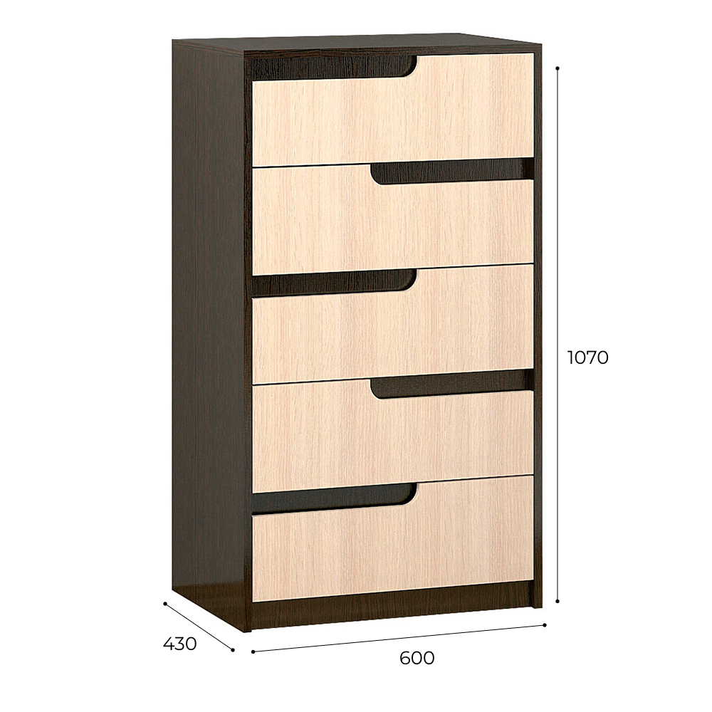 Компактный комод Гавана имеет пять выдвигающихся ящиков. Вместительный модуль из серии Гавана с оригинальным дизайном, послужит отличным дополнением в интерьере вашей гостиной, спальни или прихожей.