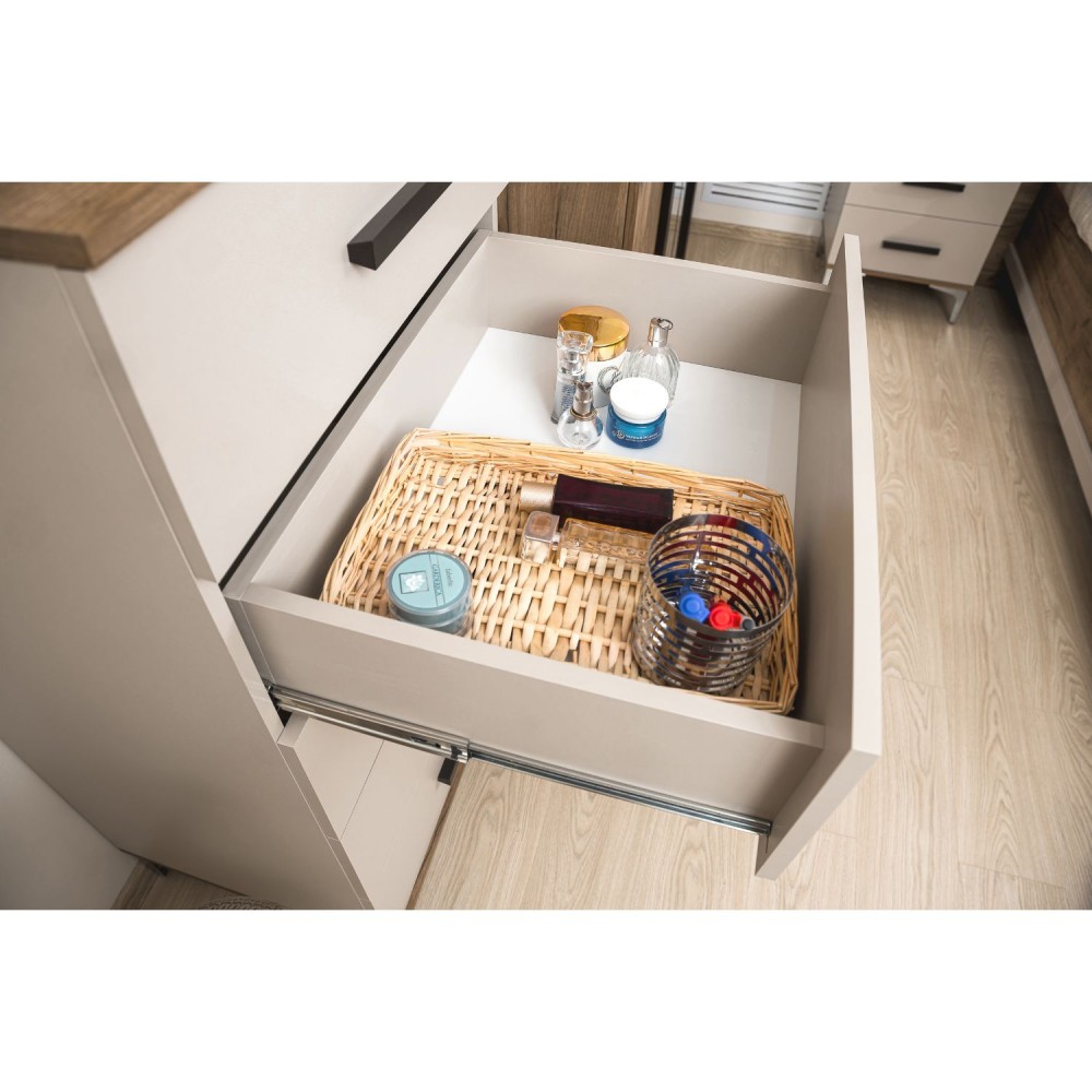 Стильный высокий комод с шестью ящиками из коллекции мебели Кара сочетает в себе простоту, утончённость и функциональность.