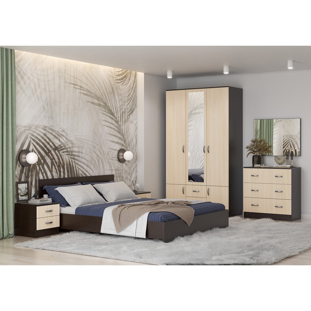 Удобная двуспальная кровать Ронда из ЛДСП в стиле минимализм в цвете венге. Основание ДСП в комплекте.