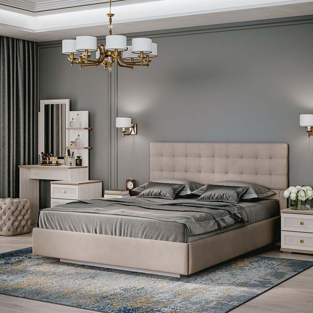 Двуспальная кровать серии 2 с мягким изголовьем - это комфортное решение для Вашей спальни. Кровать имеет универсальный дизайн и сочетается как с мебелью в классическом стиле, так и с современными дизайнерскими решениями. «Парящая» двуспальная кровать с бархатистой велюровой обивкой.
