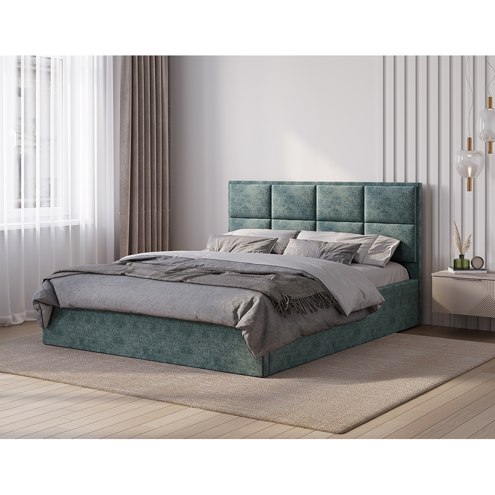 Изголовье кровать Линда привлекает внимание оригинальным исполнением: широкие прямоугольники обтянуты велюром эффектного цвета. Модель имеет спальное место размером 160х200 см, с подъемным механизмом и тремя ящиками для хранения постельного белья, высокое мягкое изголовье, обтянутое велюром приятного цвета морской волны.