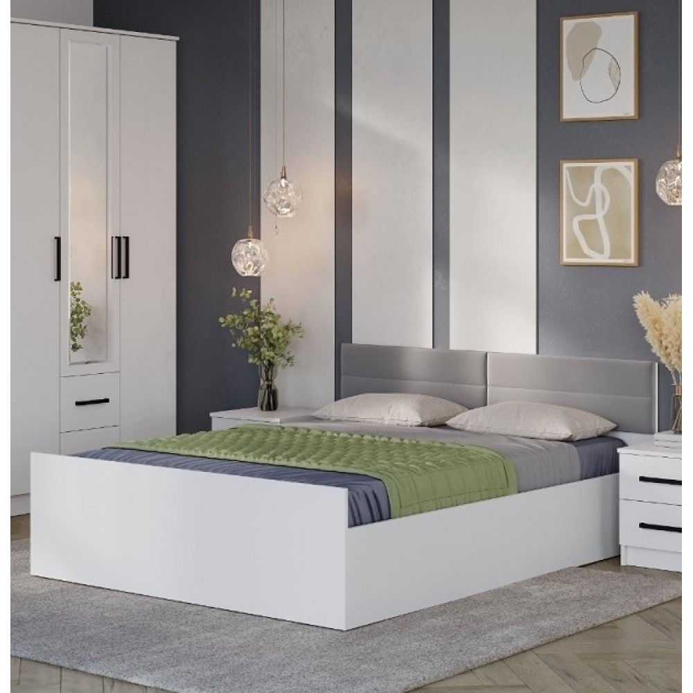 Коллекция мебели для спальни Фьюжн является воплощением эстетики минимализма. Двуспальная кровать Фьюжн станет центром Вашей спальни и подарит много часов сна и отдыха. Мягкая деталь на изголовье обтянута износостойкой мебельной тканью (велюр) приятного серого цвета.