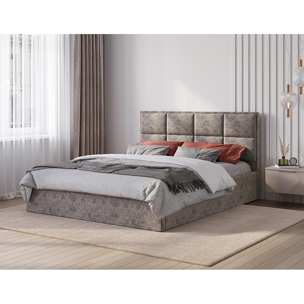 Изголовье кровать Линда привлекает внимание оригинальным исполнением: широкие прямоугольники обтянуты велюром эффектного цвета. Модель имеет спальное место размером 160х200 см, проложки ДСП и три ящика для хранения постельного белья, высокое мягкое изголовье, обтянутое велюром приятного серого цвета.
