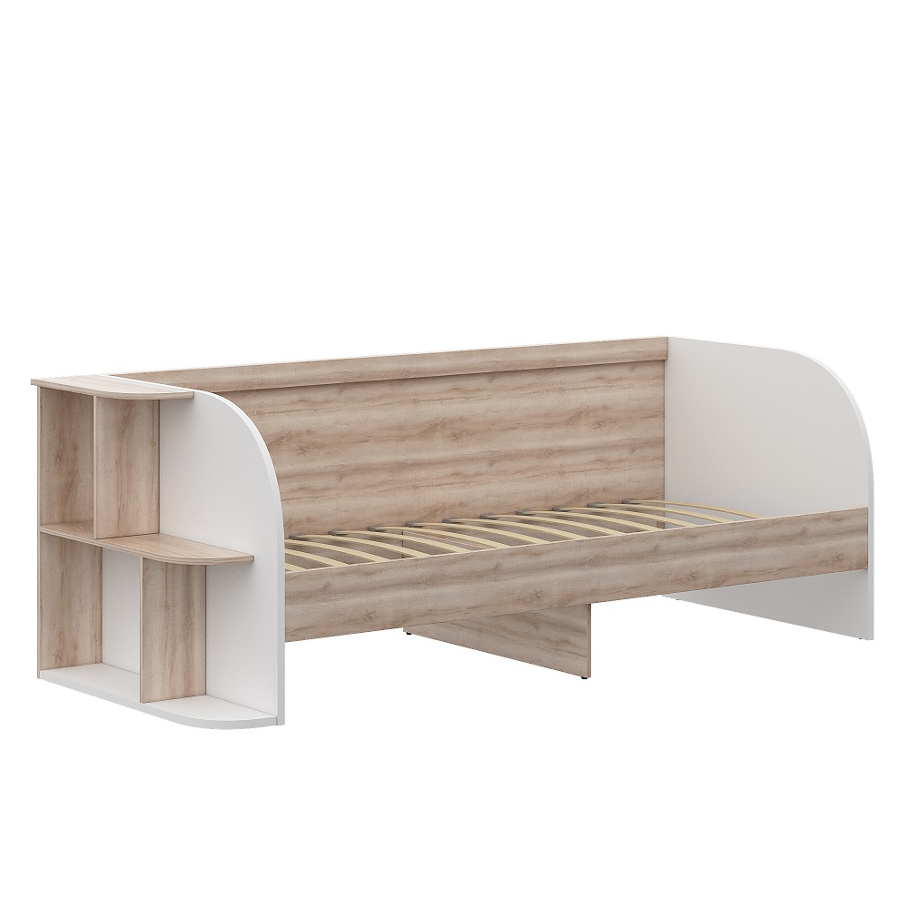 Односпальная кровать Люмен обеспечит Вашему ребенку комфортный сон и добавит функциональности основному мебельному гарнитуру в детской. Модуль комплектуется основанием и открытыми полками. Ящики и матрас приобретаются отдельно.