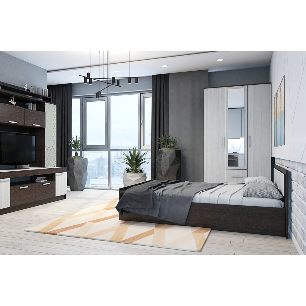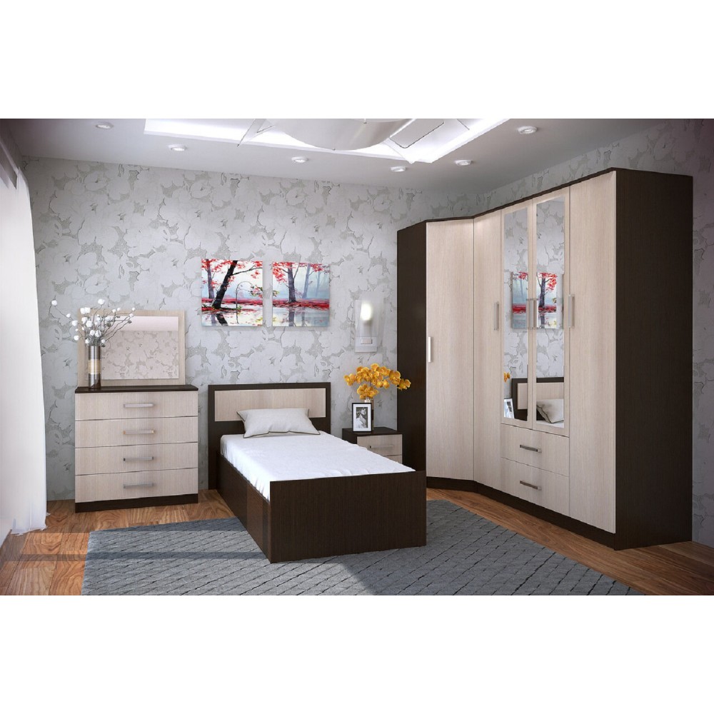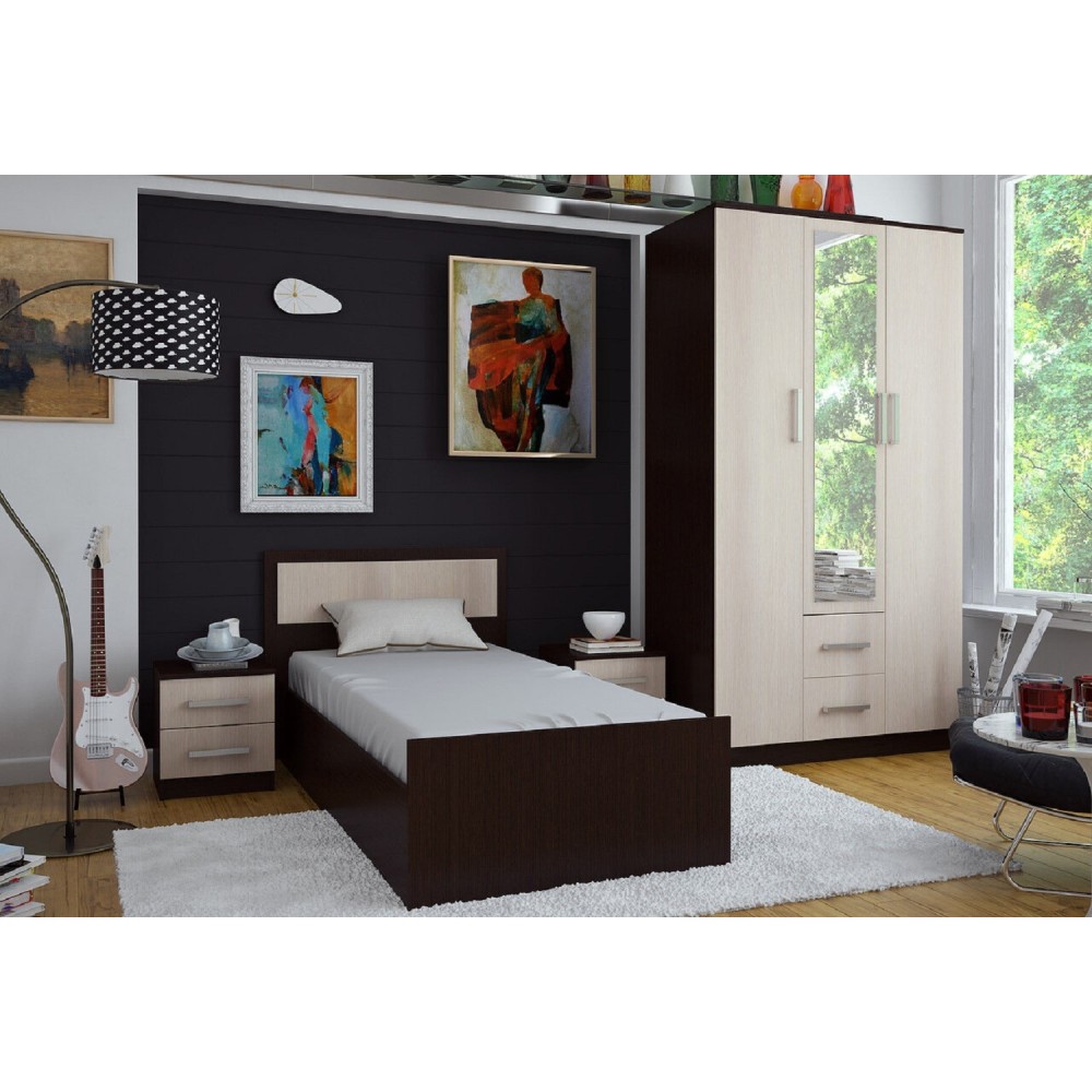 Односпальная кровать 90х200 Фиеста Light в цвете венге / лоредо с проложками ДСП. Контрастное сочетание цветов венге и лоредо.