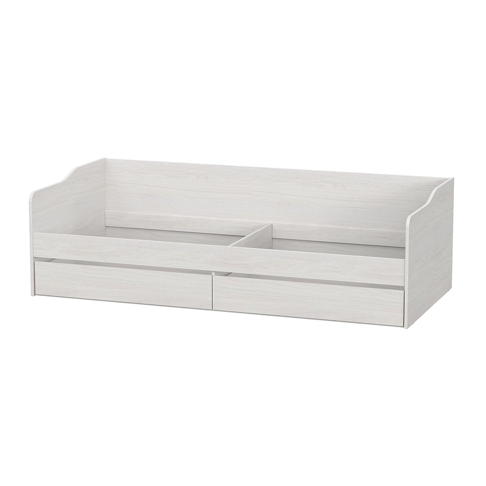 Надежная односпальная кровать из ЛДСП с ящиками. Выполнена в приятном древесном декоре "ясень анкор светлый". Два выкатных ящика подойдут для хранения постельного белья и личных вещей ребенка.