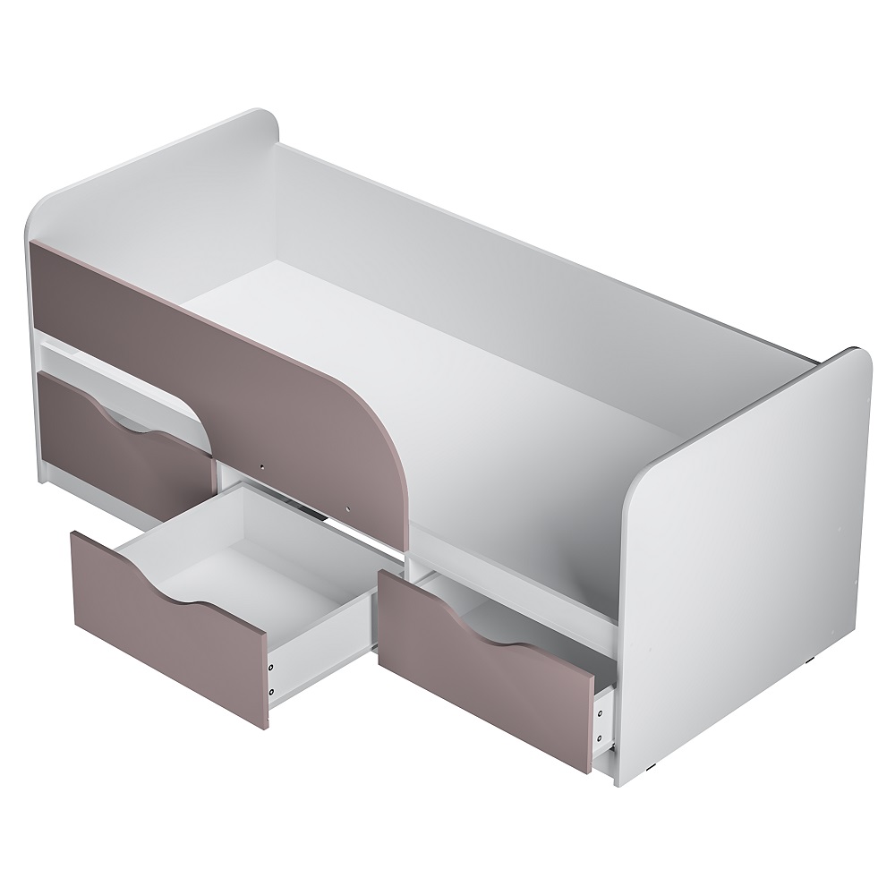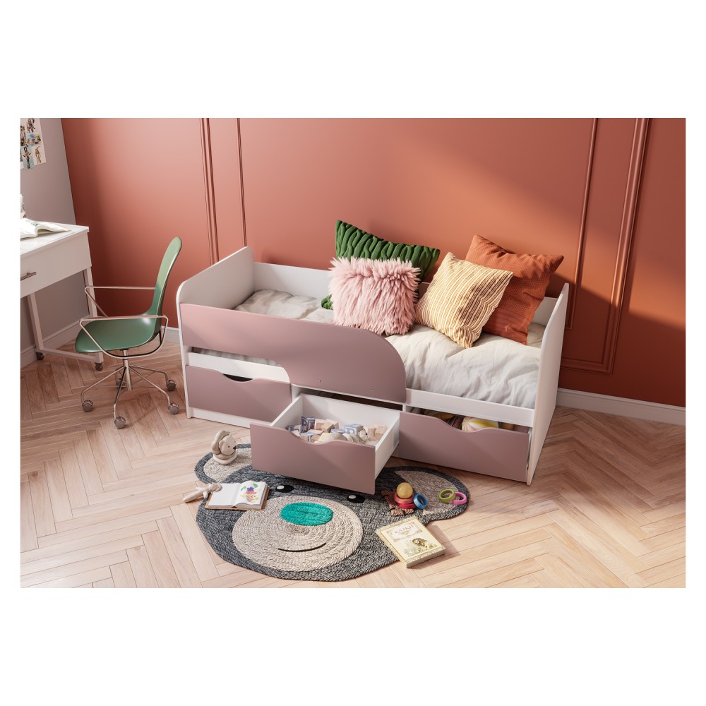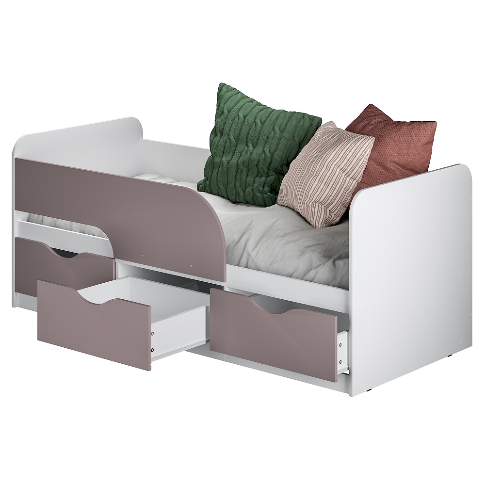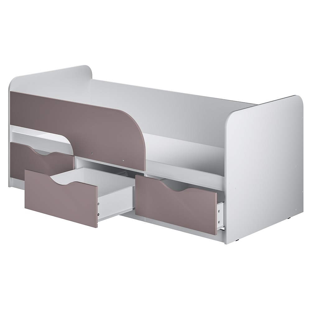 Кровать Стандарт КР-22 NEW выполнена в современном стиле, который подойдёт для любого интерьера детской. Модель комплектуется тремя вместительными ящиками, в которых вы можете разместить игрушки, постельное белье и даже одежду ребенка. На фасадах ящиков отсутствует лицевая фурнитура для большей безопасности детей.