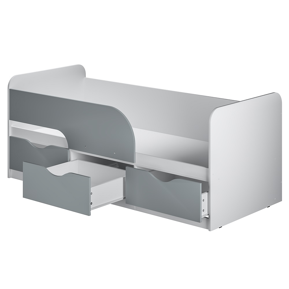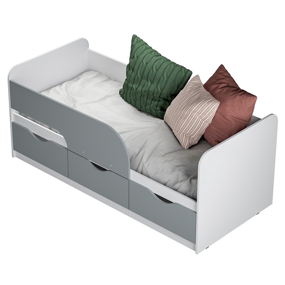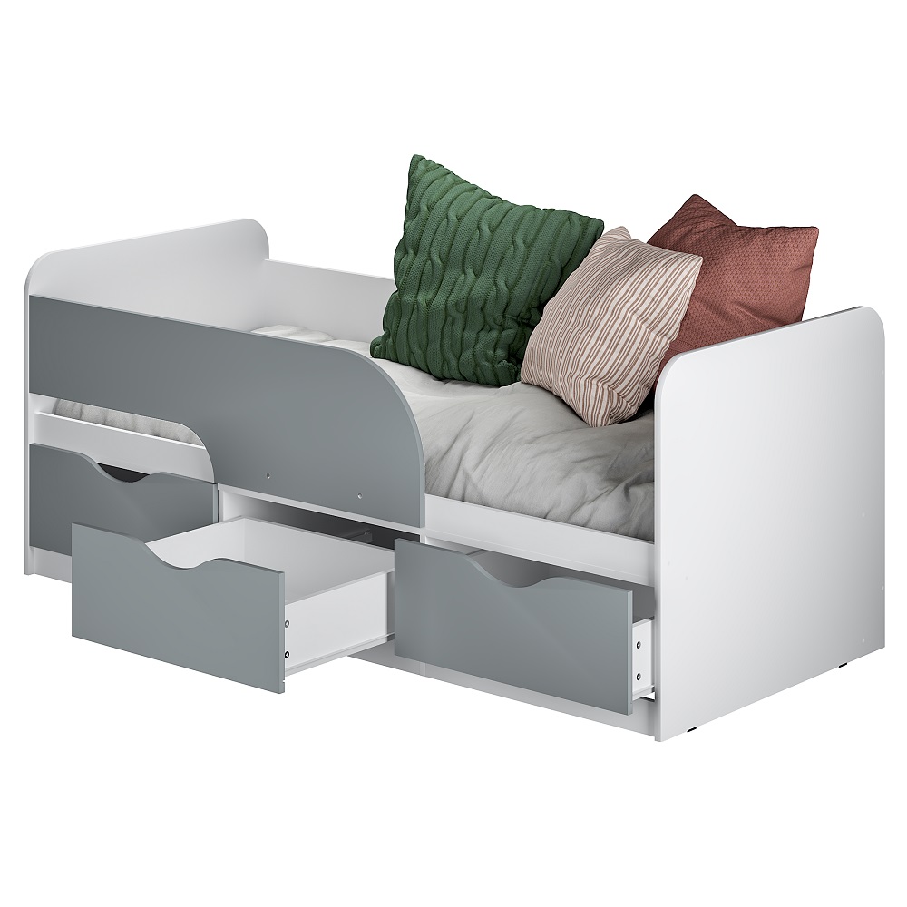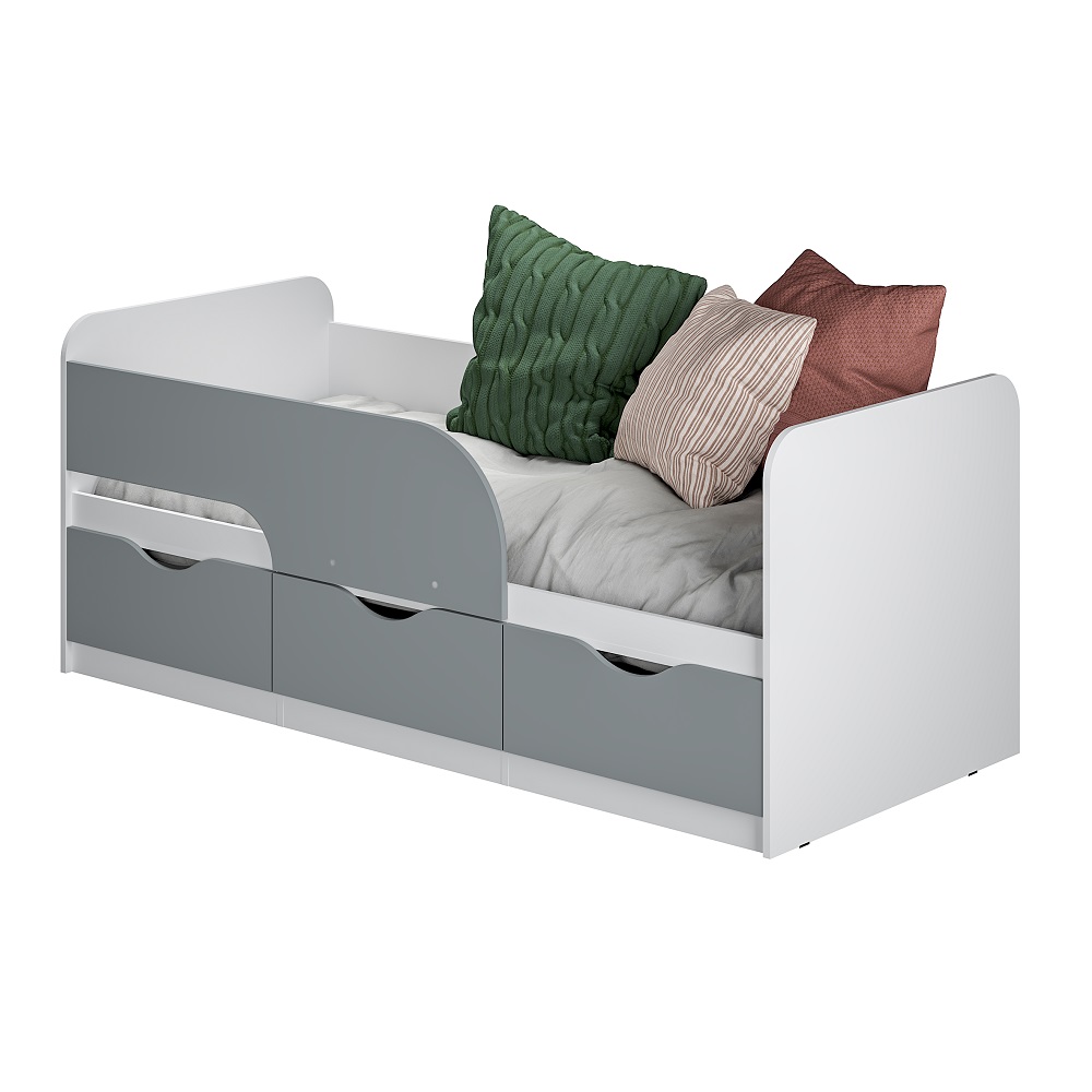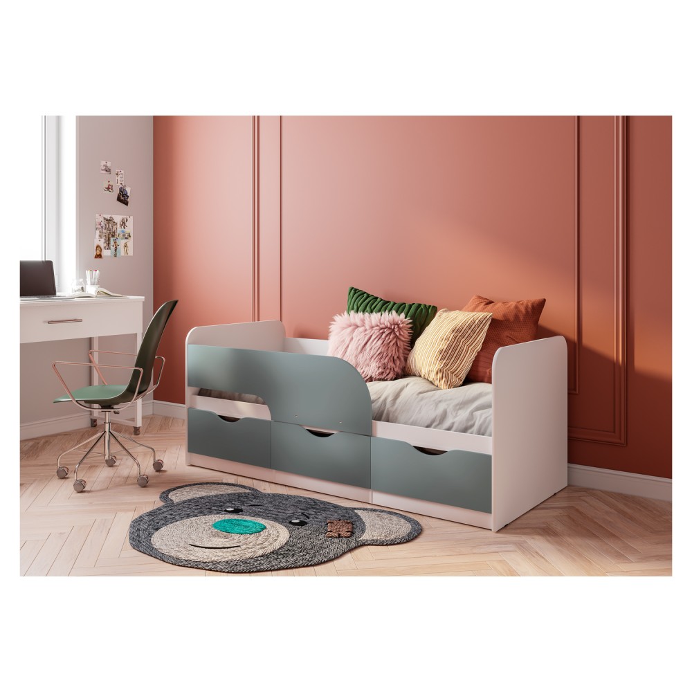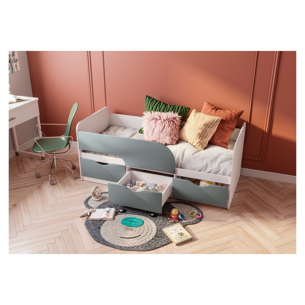 Кровать Стандарт КР-22 NEW выполнена в современном стиле, который подойдёт для любого интерьера детской. Модель комплектуется тремя вместительными ящиками, в которых вы можете разместить игрушки, постельное белье и даже одежду ребенка. На фасадах ящиков отсутствует лицевая фурнитура для большей безопасности детей.