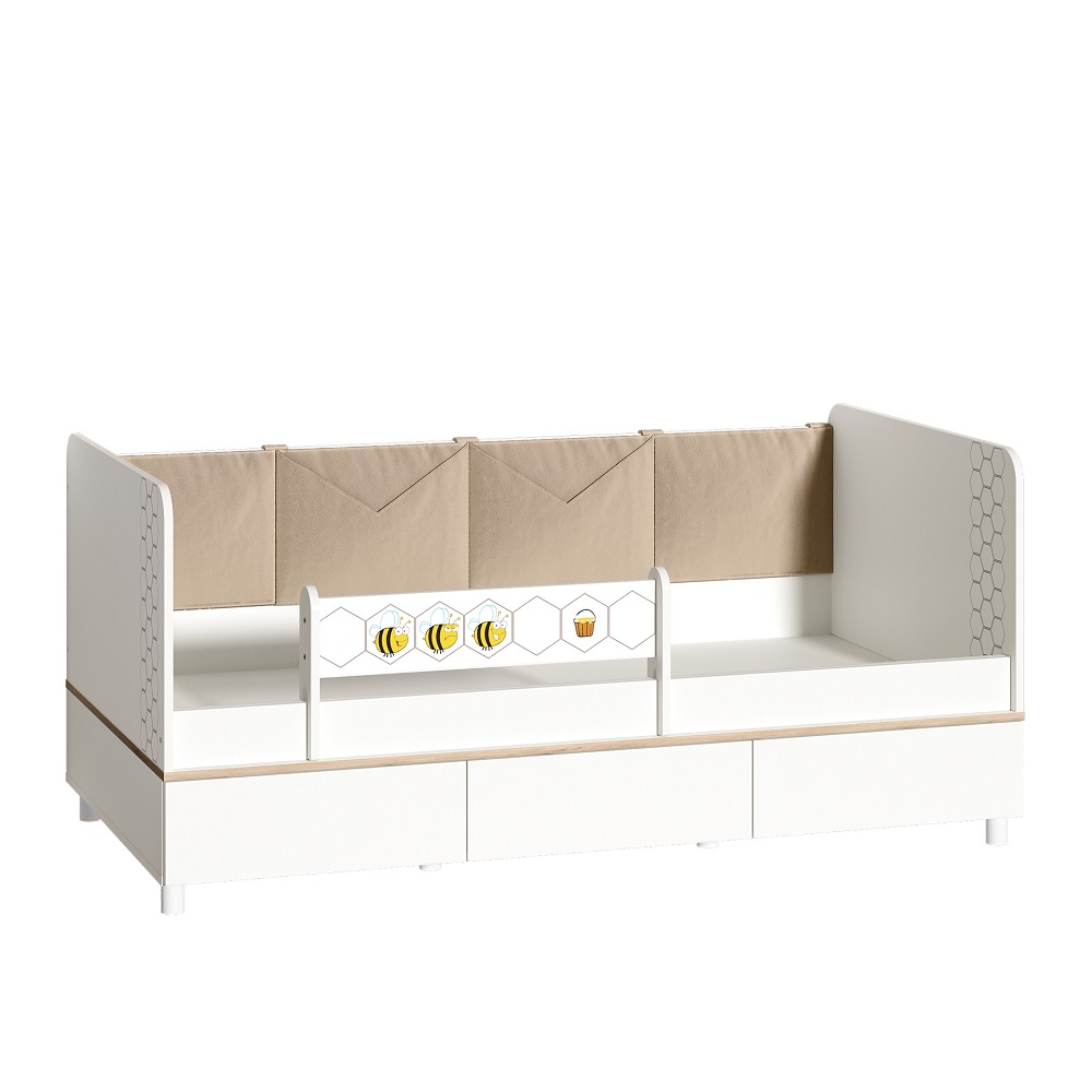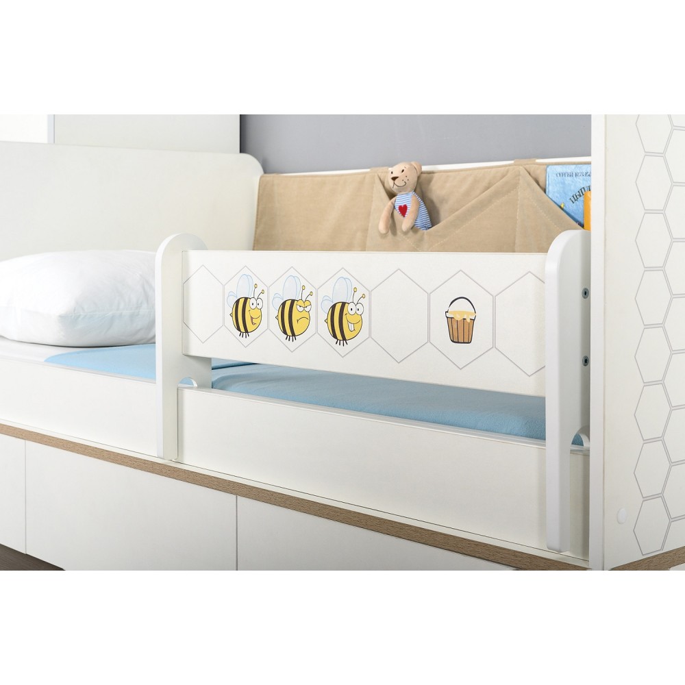 Кровать Эйп — идеальный выбор для создания уютной и комфортной зоны для отдыха и сна вашего ребёнка. Благодаря съёмному мягкому элементу с карманами ( в комплект не входит), расположенному на спинке кровати, любимые игрушки всегда будут под рукой. Выдвижные ящики для белья позволяют удобно хранить постельные принадлежности и одежду. Ограничительный бортик обеспечивает безопасность малыша во время сна. Регулируемые опоры позволяют установить кровать даже на неровном полу.