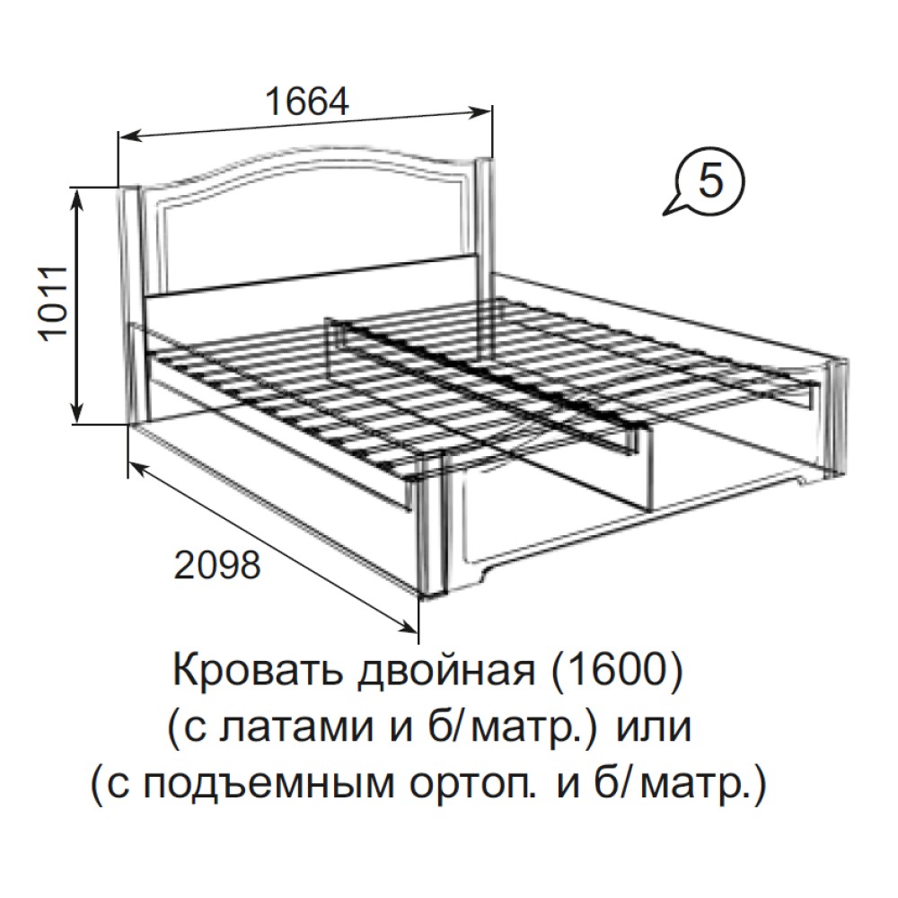Виктория (05) кровать двойная 1600 (латы) белый снег/белый глянец